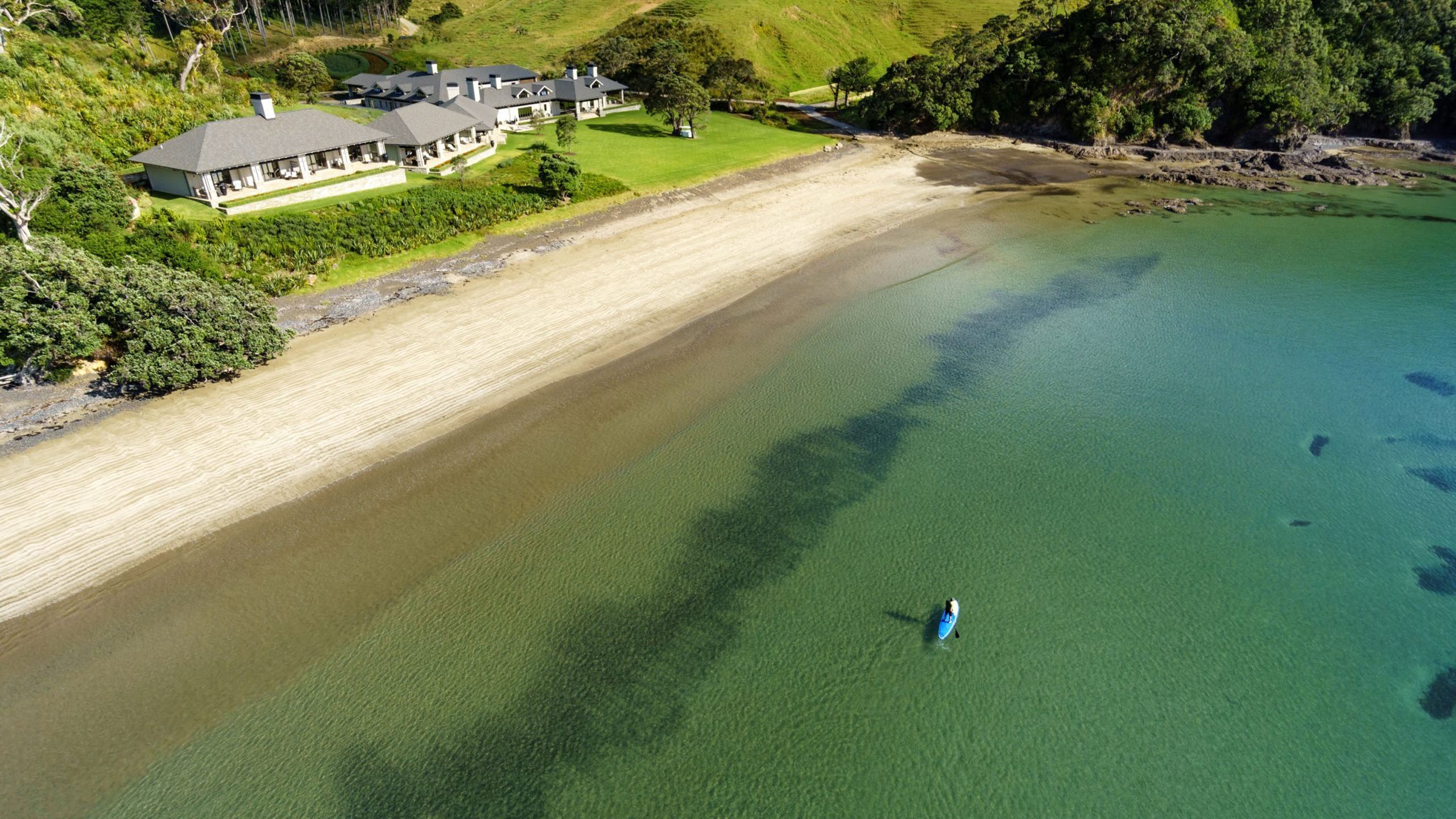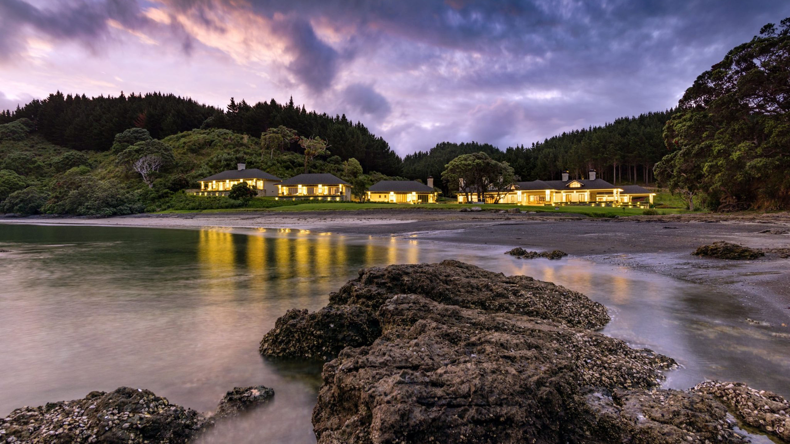 Helena Bay Lodge is nestled in its cove in the top corner of New Zealand’s North Island, an intimate and exclusive luxury retreat backed by forest and looking out on its private length of coastline.