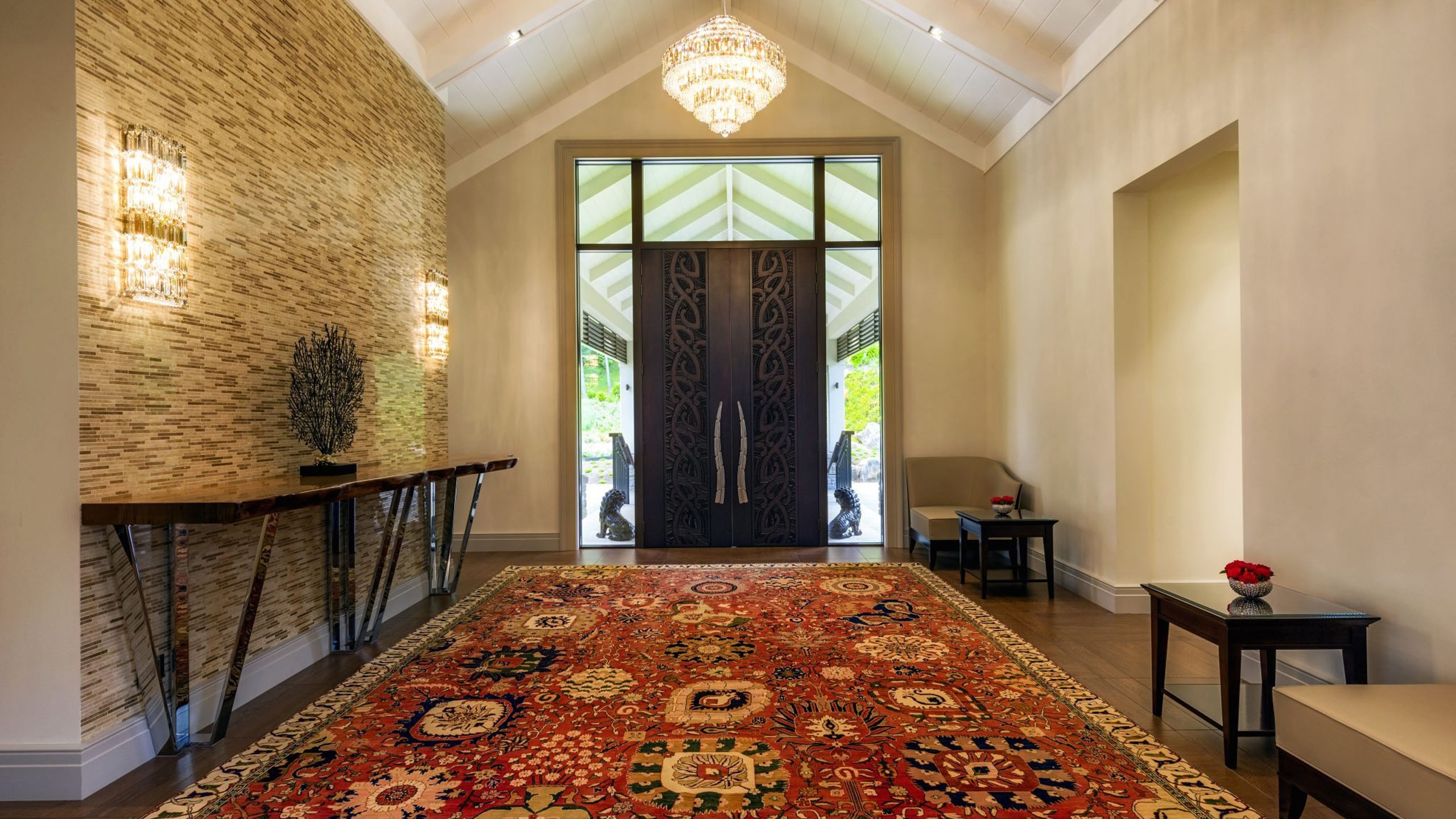 In the Main House, which forms a U-shape around the heated outdoor swimming pool, discover the owner’s eclectic artwork and treasures, which have been collected on travels around the globe, as well as a gym, sauna, library, lounge areas and an outdoor fire pit.