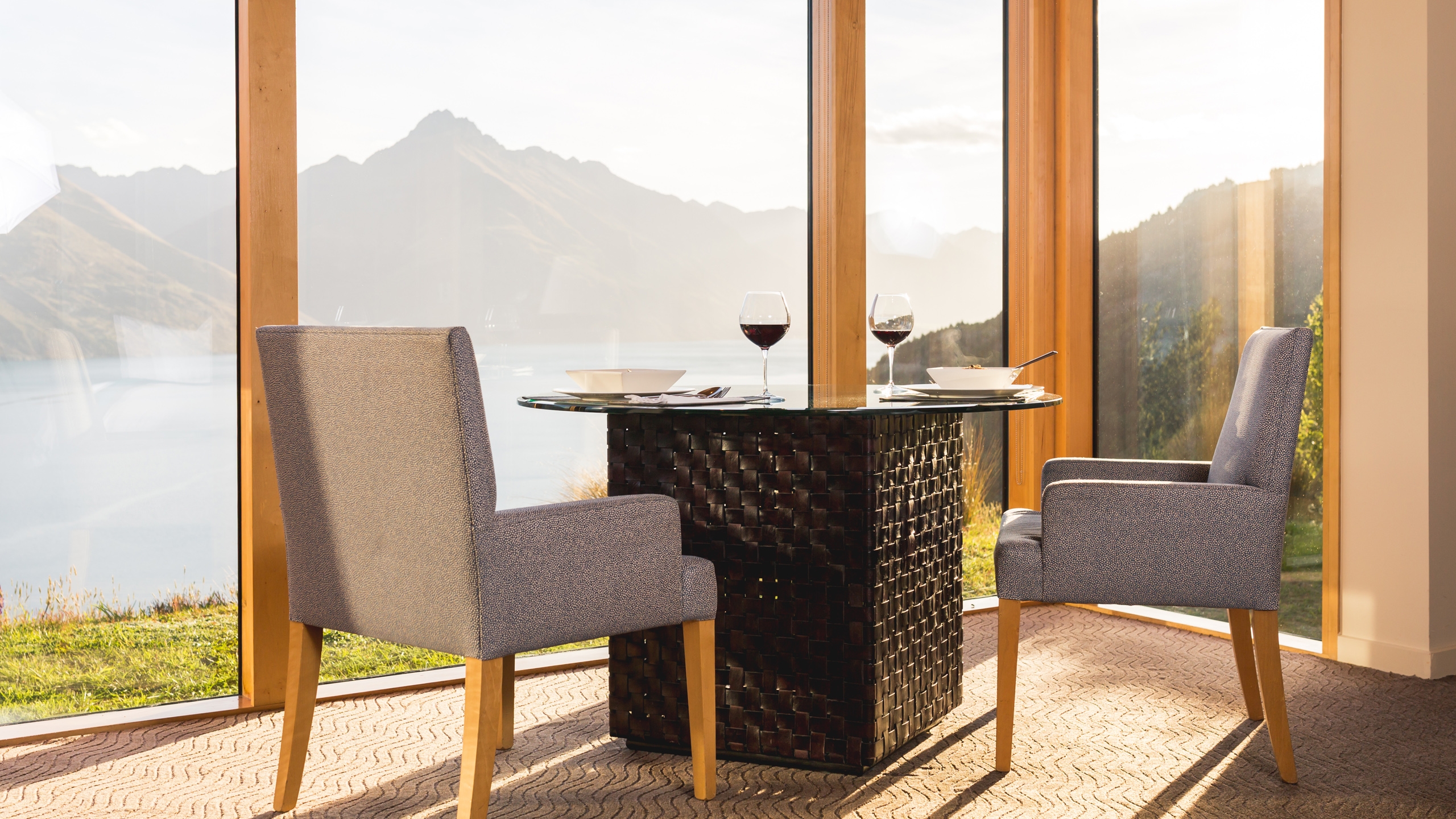 Azur Lodge consists of nine private villas set on a hilltop overlooking the surrounding mountain ranges and Lake Wakatipu.