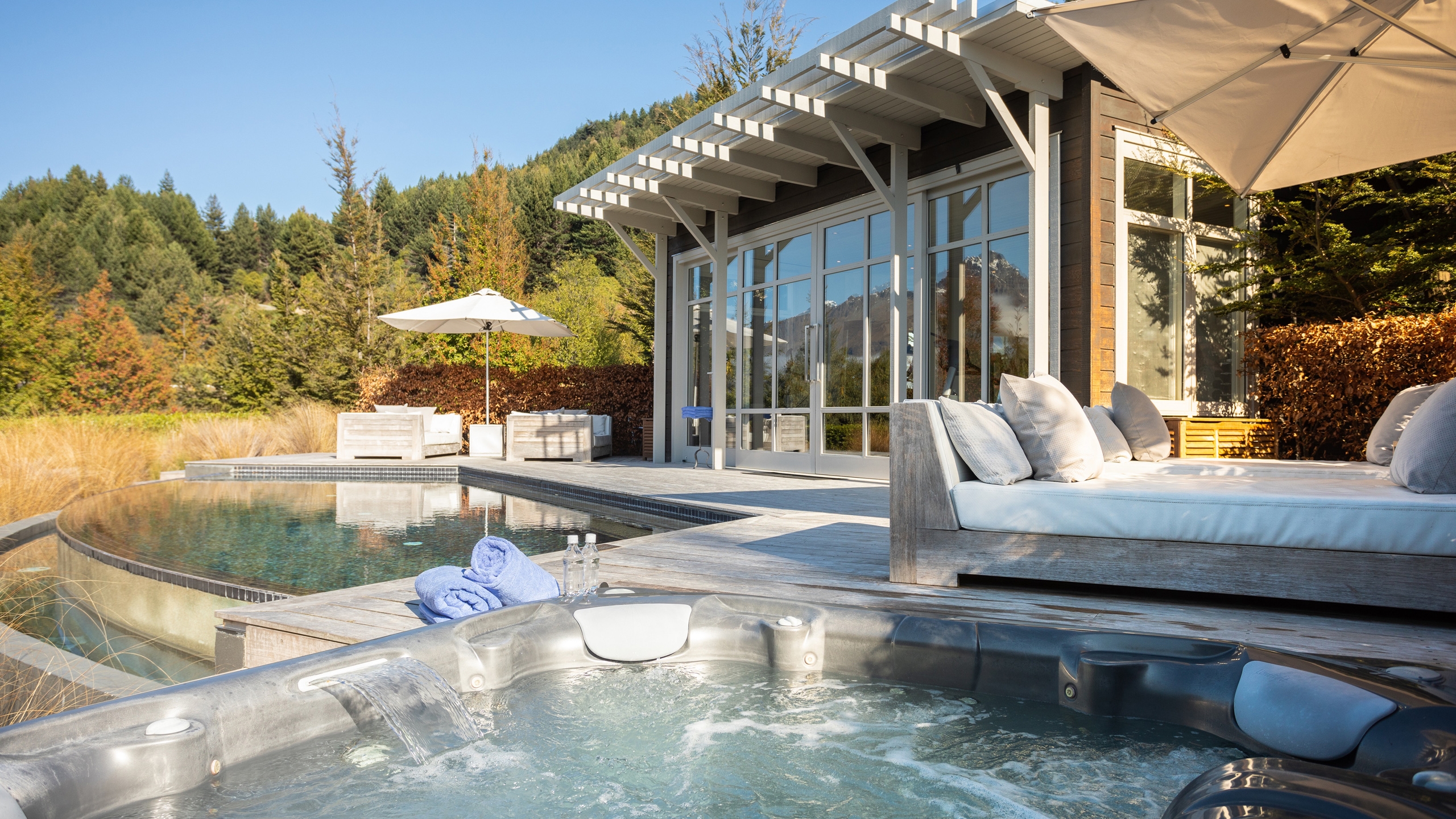 Modern, bright and with plenty of room, the 16 suites have been styled by the highly celebrated designer Virginia Fisher. Four suites are found in the main lodge section while others have been built in a native forest with alpine panoramas. All have their own private balcony, lounge area and decadent bathroom, not to mention the cosy fireplace. The sizeable Owner’s Cottage is an idyllic getaway for larger groups or families.