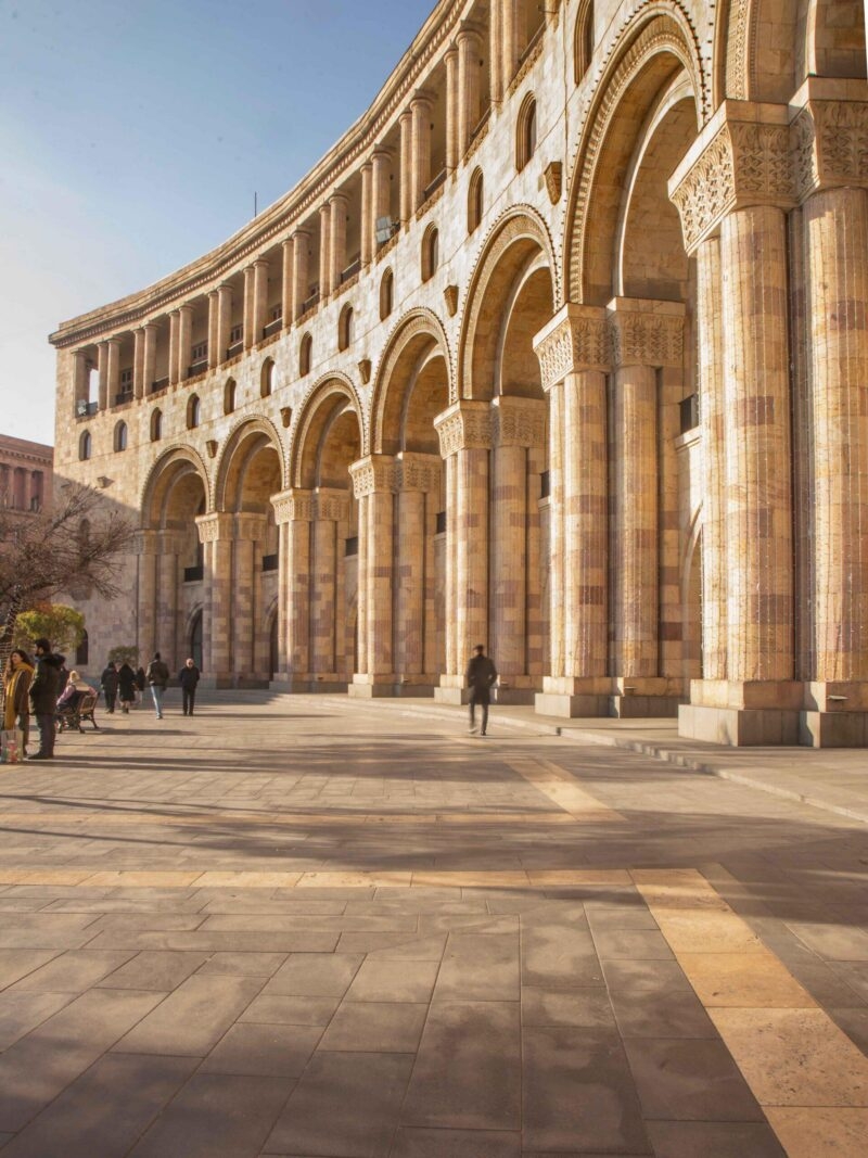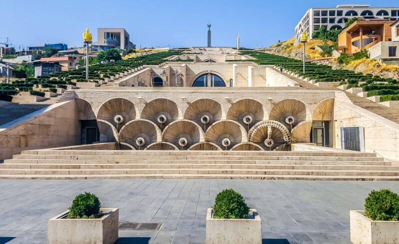 One of the most notable landmarks in the city is the Yerevan Cascade, a massive limestone staircase. Explore the gardens and fountains and you’ll spot a variety of contemporary sculptures. The sweeping views of the city and Mount Ararat from the top are excellent. From here, you can take a short walk to the Mother Armenia Monument. This large sculpture represents the Soviet victory in Word War II and commemorates the Armenian lives lost. Yerevan is also home to the ruins of Zvartnots Cathedral, a medieval Armenian cathedral that was built in the seventh century. Its circular exterior structure is unique in medieval Armenian architecture.