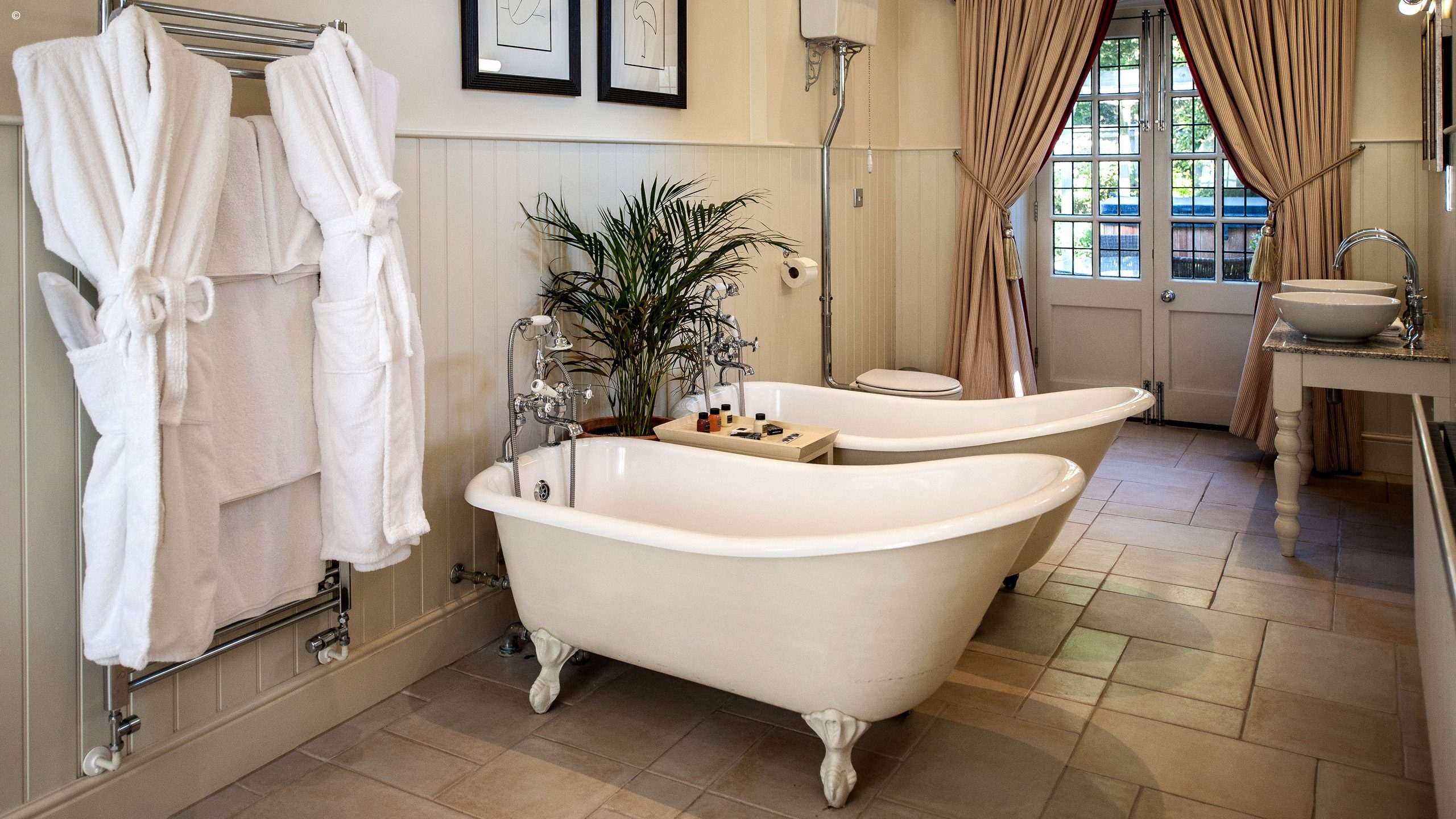 The 19 rooms and suites are classically British in style, with antique furniture and fine fabrics, and flashes of contemporary design. Some of the suites comes with dark wooden beams, and many come with rolltop baths.