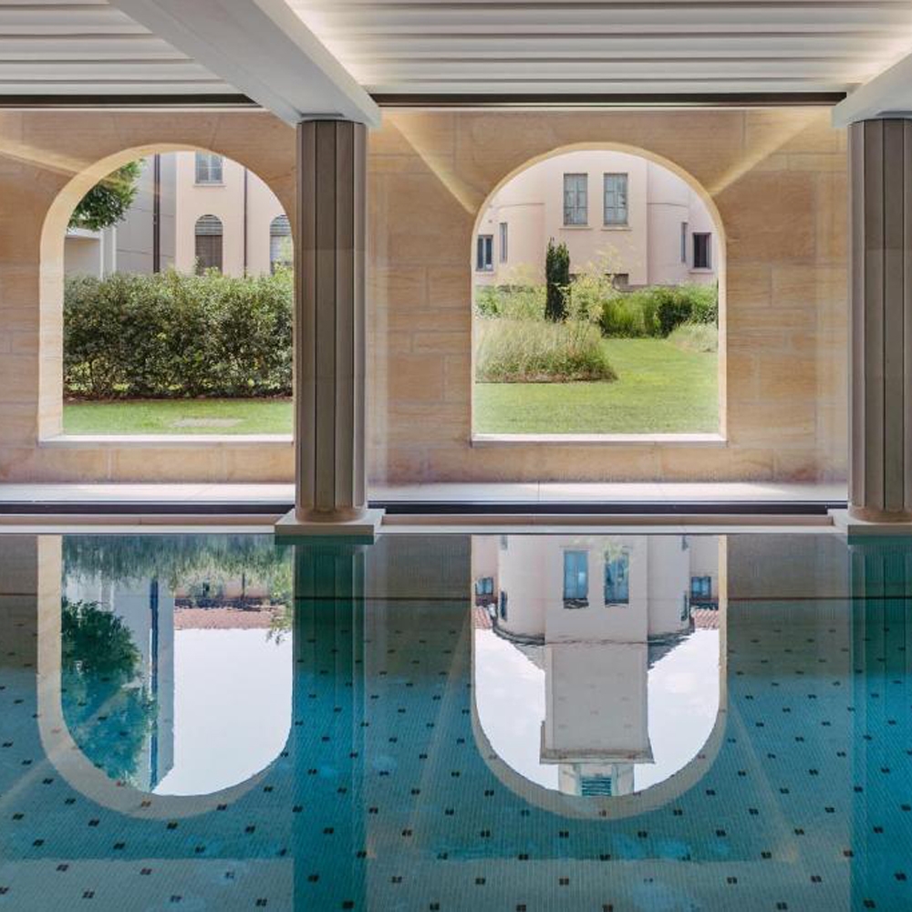For moments of relaxation, indulge in the 20-metre heated indoor pool, where you can revel in a tranquil swim or simply wind down whilst gazing upon the verdant garden expanse. Envelop yourself in the sublime revitalisation of the sauna, hammam, and Jacuzzi, or keep up with your fitness routine in the fitness room that features an array of Technogym equipment.