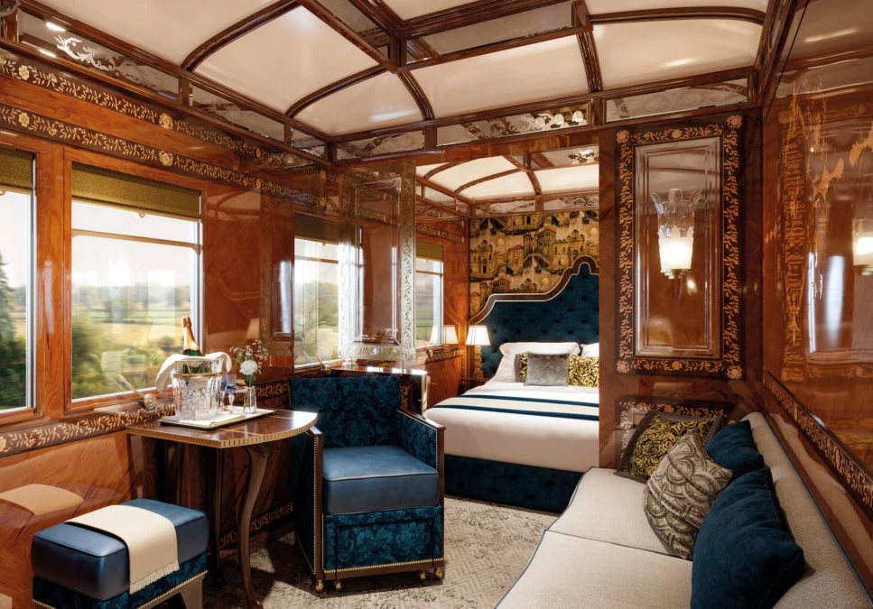 The train cars are the original 1920s models, and the charming vintage cabins have been restored to their former glory. The double cabins feature an upper and lower berth while the single cabins have one lower berth. During the day, the berths are transformed to offer comfortable banquette seating from which you can relax and watch the world go by.