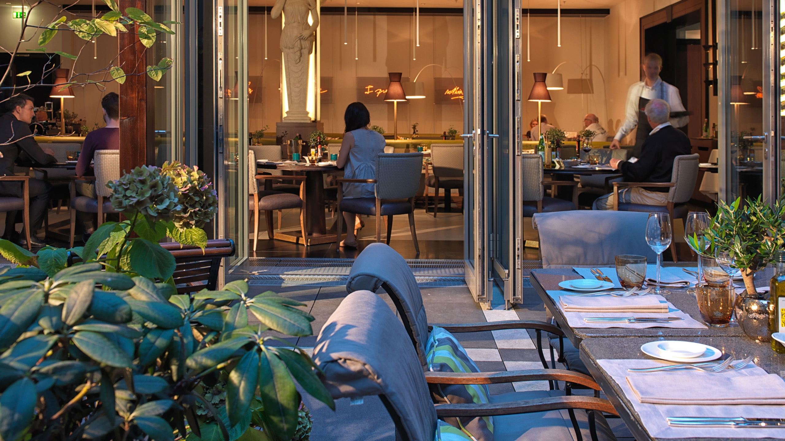Back on the ground floor, guests can dabble in classic Italian and Mediterranean dishes at the on-site restaurant, La Banca – a favoured summertime spot due to its enclosed terrace garden. Next door, the La Banca Bar is ideal for a tipple, as is the rooftop terrace, with a sublime view to match.