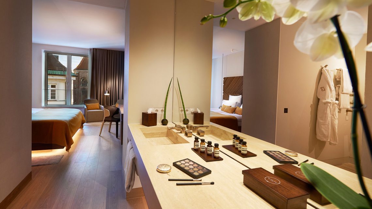Each of the hotel’s 19 individually decorated rooms have been designed as places of comfortable retreat in the middle of Munich’s vibrant city centre. Not only are they spacious and outfitted with state-of-the-art technology, but they also boast stunning city views. here you are invited to relax in luxurious surroundings while still feeling like you’re ‘home’. The modern bathrooms all have rain showers, some also have a bathtub, selected rooms have balconies, and the roof suite has access to a large terrace.