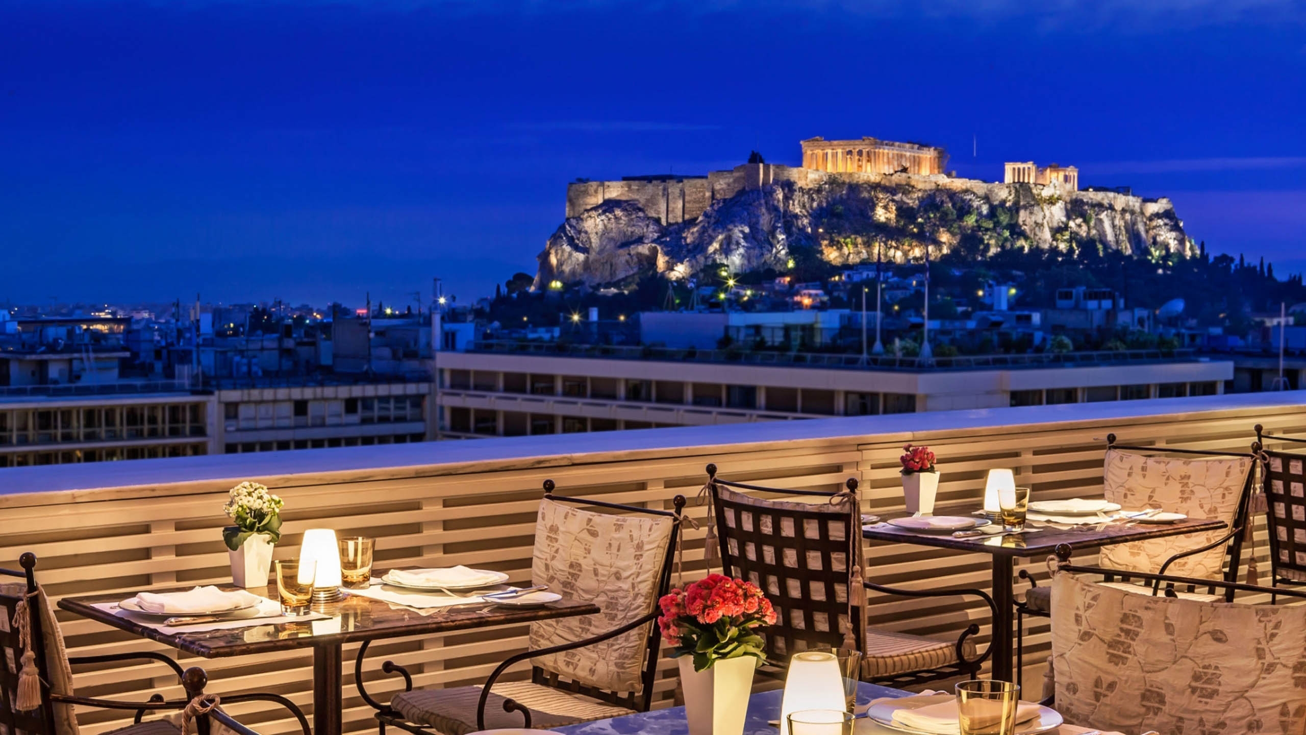 There are 102 spacious rooms and suites, topped of on the ninth floor with the sprawling Penthouse and its incredible private rooftop pool with views out over the city to the Acropolis.