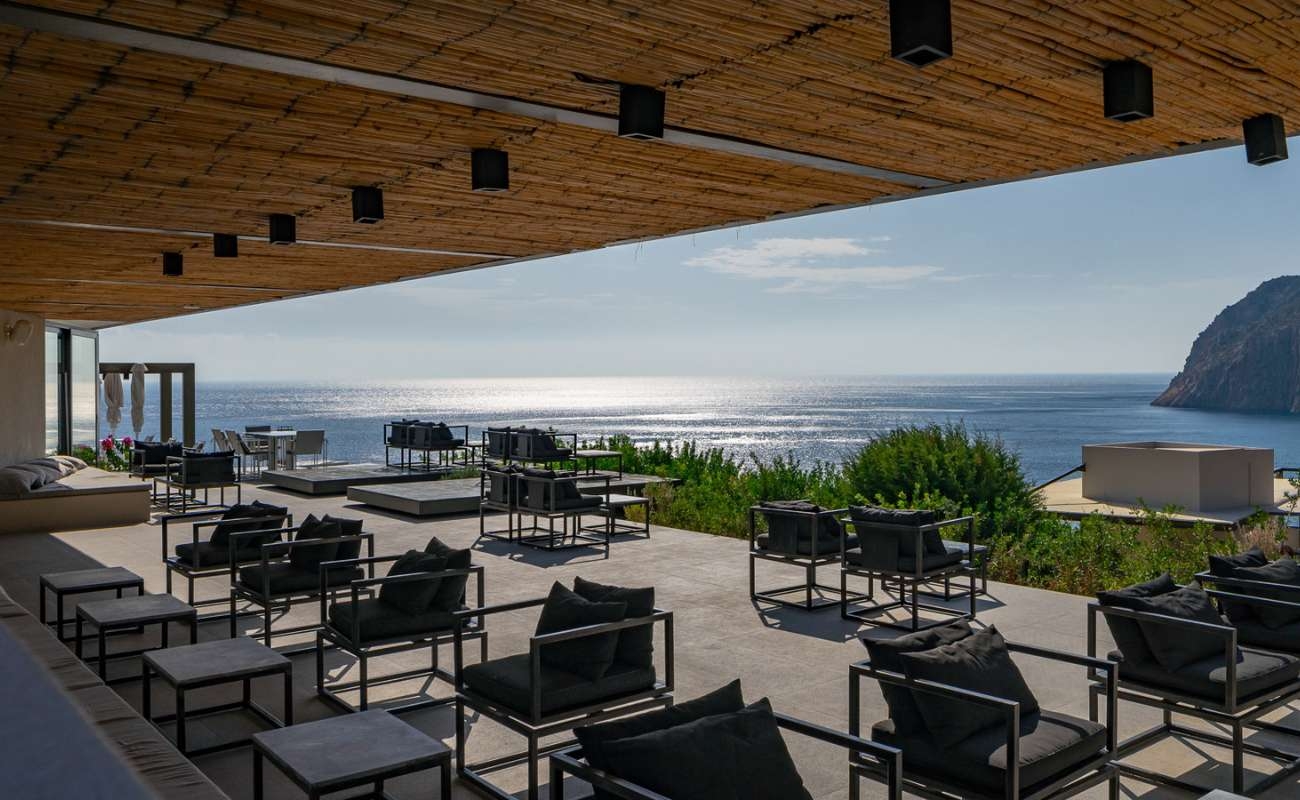 The hotel has its own bar and restaurant with indoor and outdoor dining options. The restaurant is large with two walls made completely of glass and wonderful cliff-top views, completely immersing diners in the landscapes surrounding the hotel. The menu here features flavoursome and authentic Mediterranean recipes with modern twists inspired by Greek and Italian culture. The hotel also has its own large infinity pool and pool bar, with comfortable seating and lounging areas, again, with spectacular views out to sea.