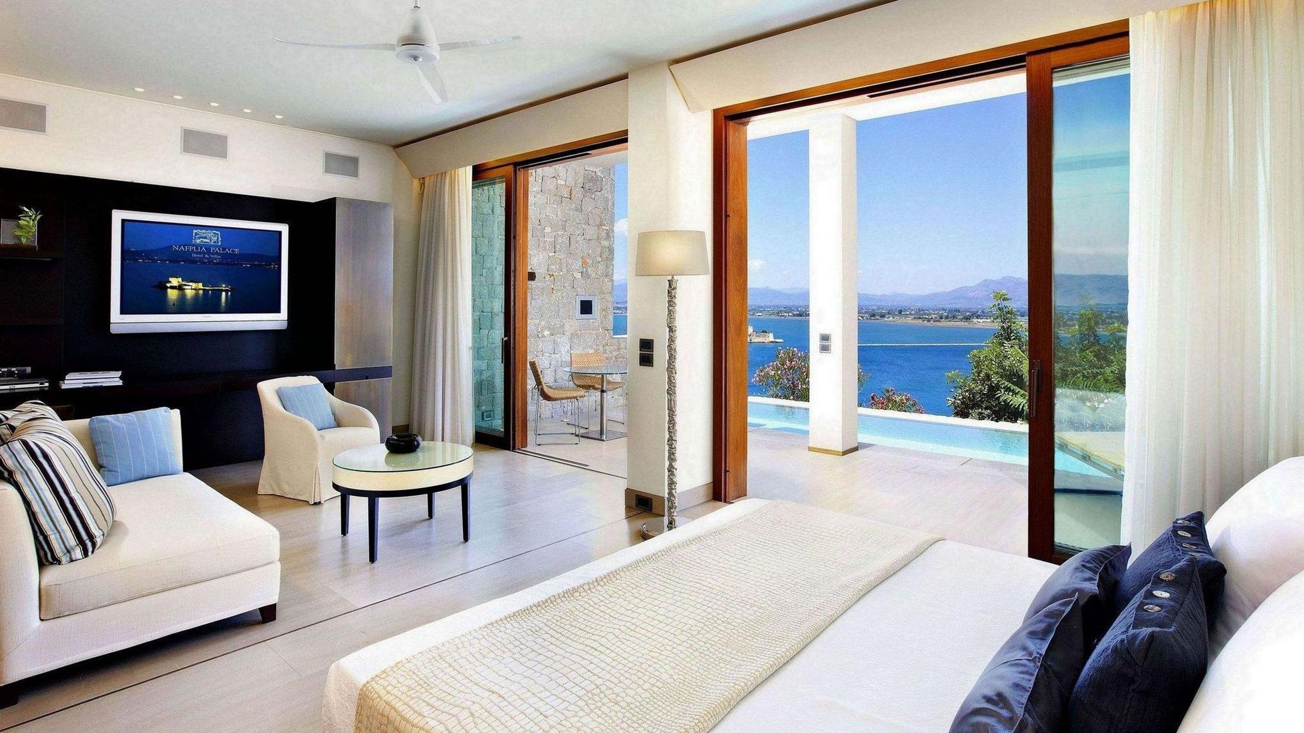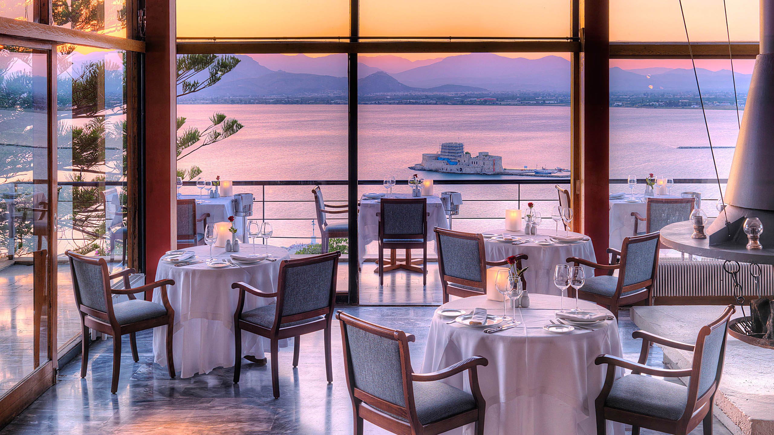 The Nafplia Palace Hotel & Villas sits atop the ancient acropolis of Akronafplia with fabulous sea views over the rooftops of Nafplion below.