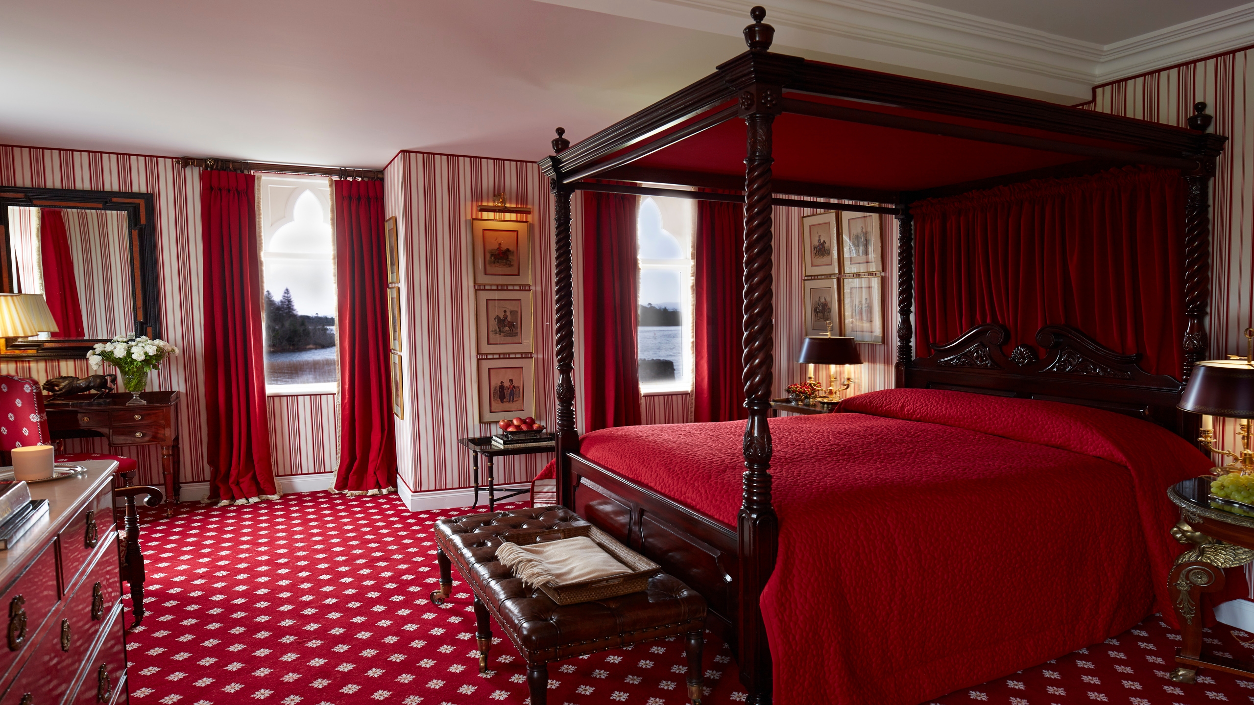 The hotel’s 83 rooms and suites are decorated with a royal colour palette of deep greens and brilliant reds. Some suites offer expansive views of the largest lake within the Republic of Ireland while regal four-poster beds along with original portrait art will effortlessly transport you to a fanciful world of ancient charm.