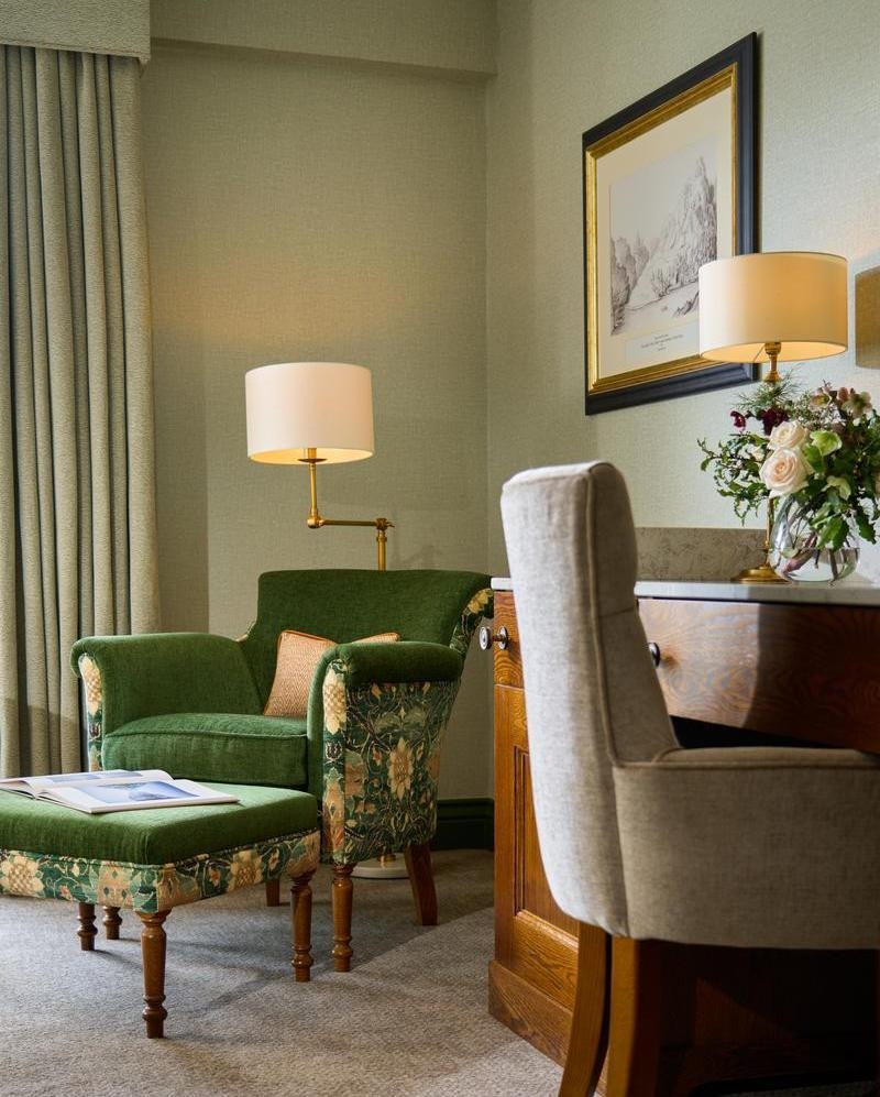 Back at the hotel, each room captures the essence of Killarney. Wallpapers stretch from wall to wall, inspired by historic watercolour paintings. Across the palette, shades of green echo the ferns of the forest. Deep hues of blue reflect the beauty of the region’s lakes. Family antiques add character while handmade furnishings celebrate the local artistry. Stay in a garden suite, and wake up to views of the snow-dusted mountains beyond. Slow mornings unfold on your private balcony, where blossom-filled gardens reveal themselves below.