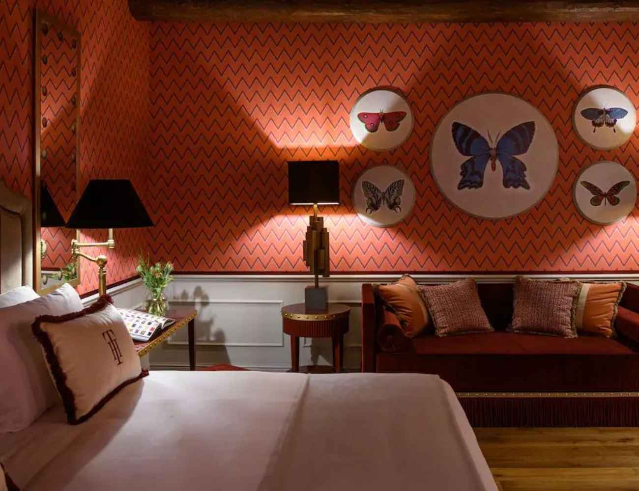 Set within one of Florence‘s oldest and most prestigious palaces, the building of Il Tornabuoni Hotel dates back to the 13th century. Within the imposing, historical architecture the decor of the hotel echoes elements of the era; wide staircases, intricate ironworks, large picture windows, renaissance style murals on domed ceilings and flagstones floors.
