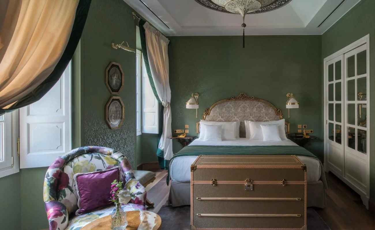 Set across the original palazz (building) and within an additional private villa, there are 20 rooms in total in this magnificent property. The eight rooms of the palazz are decorated in jewel-toned walls, in-keeping with the interiors from yesteryear, with imposing 200-year-old oak beams and lamps of the finest Venetian silk overhead. The Villa has twelve extraordinary rooms and suites with high ceilings, ornate stuccos and traditional floors from the building’s 18th-century origins combined with modern comforts for a truly luxurious stay.