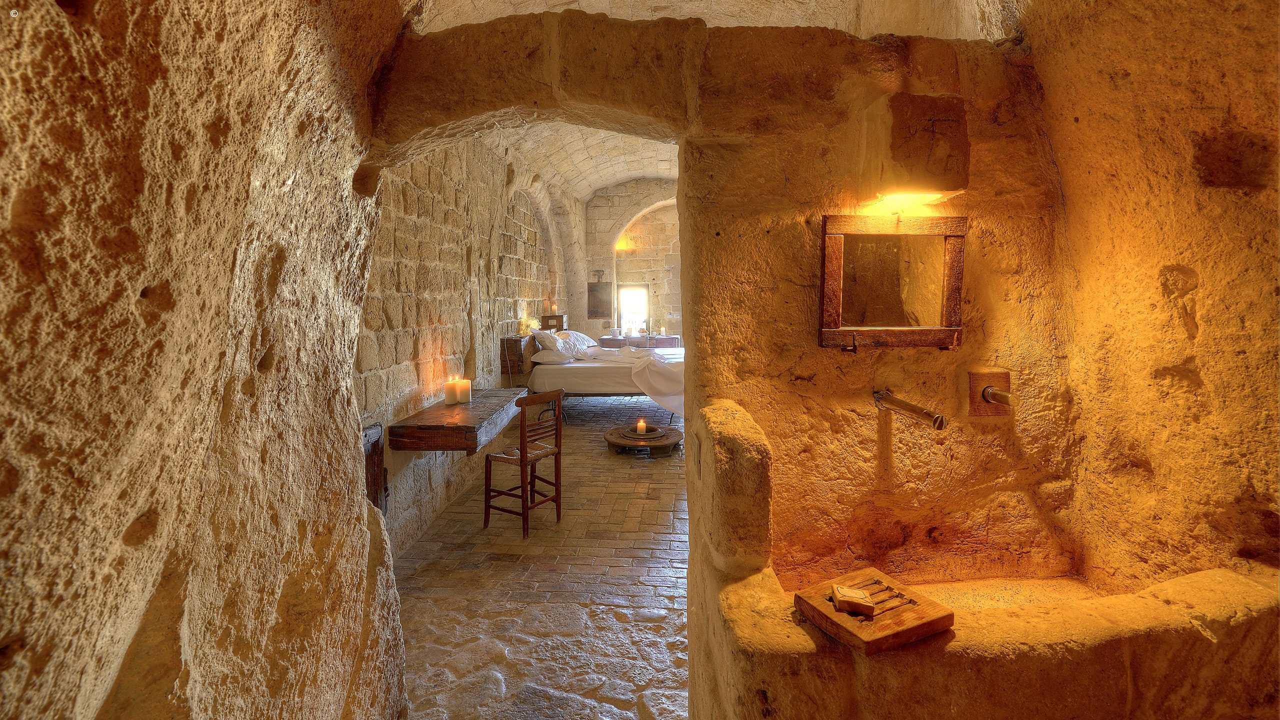 Buried deep into the oldest part of the Sassi is the Sextantio Le Grotte della Civita, an ancient cave dwelling that has been turned into a wonderfully atmospheric boutique hotel.