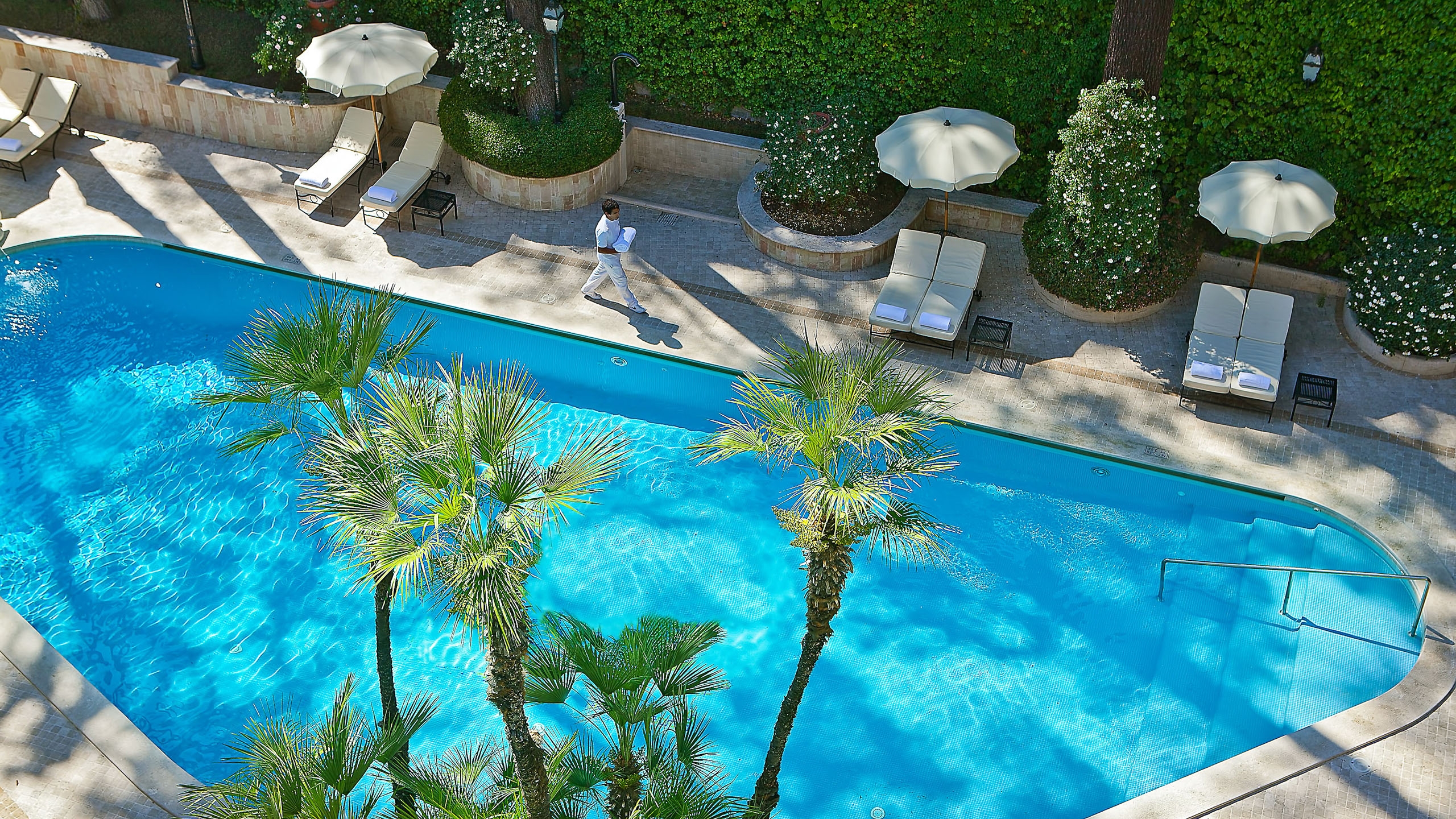 Close to the center, yet nestled away from the bustle of Rome, fully enveloped by the peace of its beautiful gardens, you’ll find the old-world glamour of Aldrovandi Villa Borghese.