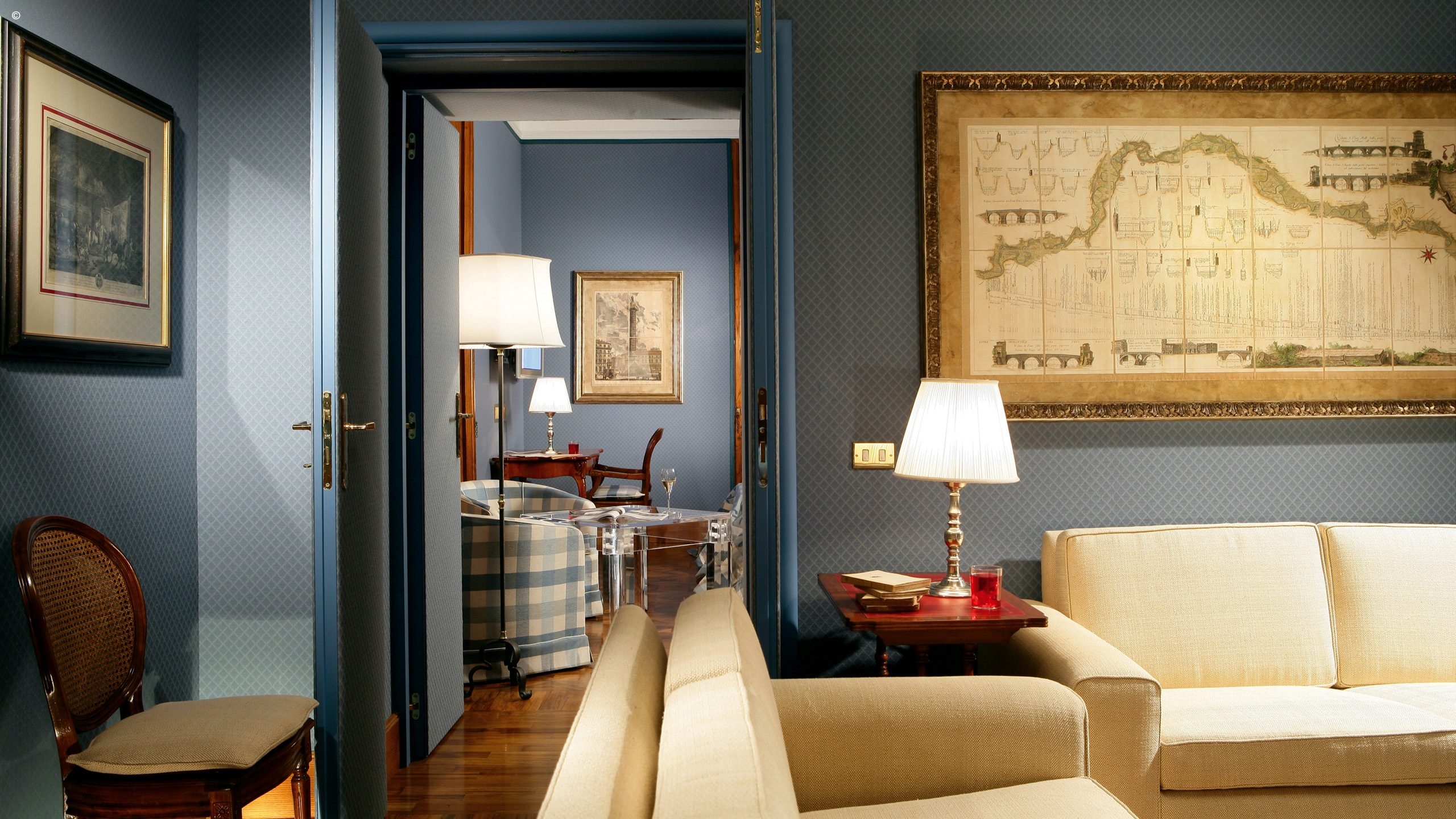 Overlooking the greenery are just 12 rooms, warm and welcoming, with subtle modern touches enhancing the historic charm of the original features. Large beds are clad in Fiandra linen sheets and alpaca or cashmere throws. Bathrooms are spacious and lined in marble, and all have baths as well as showers. Well-stocked minibars are complimentary.