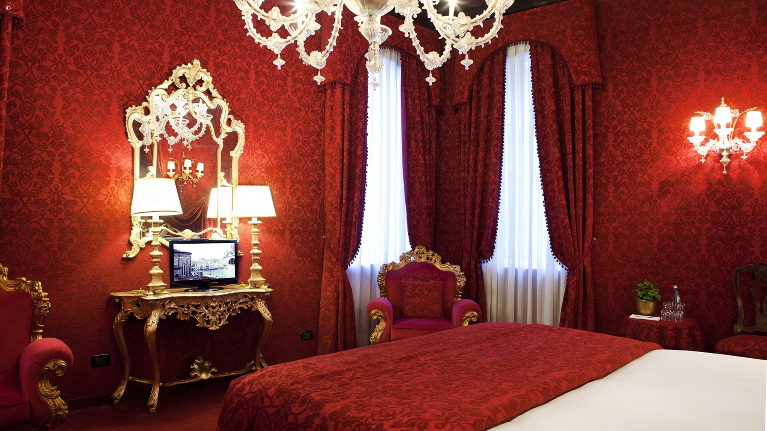 There are just twelve sumptuous rooms, including two suites and five themed rooms inspired by Venice’s history, such as the Oriental Room, a nod to the travels of Marco Polo, and the Doge’s Room, all deep-red damask drapes and gold accents.