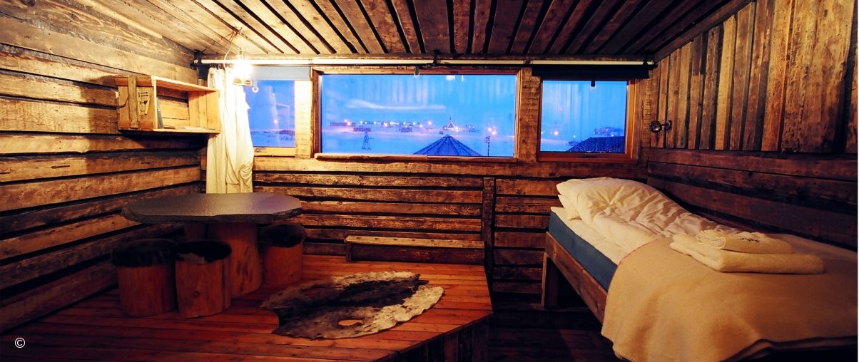 Decked out in a traditional trapper style with driftwood, sealskin and slate, this rustic hotel will perfectly set the tone for your experience in the wild lands of Svalbard.