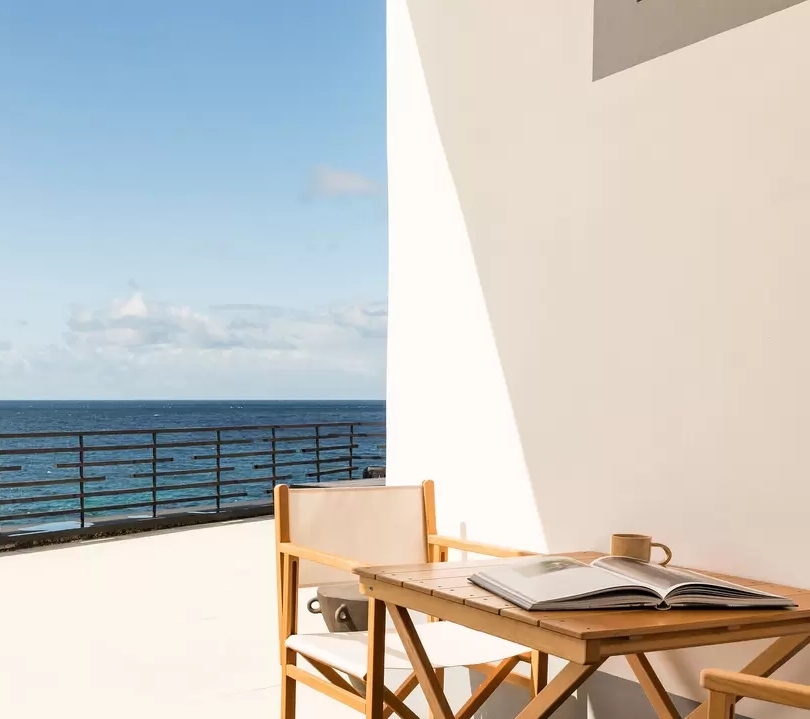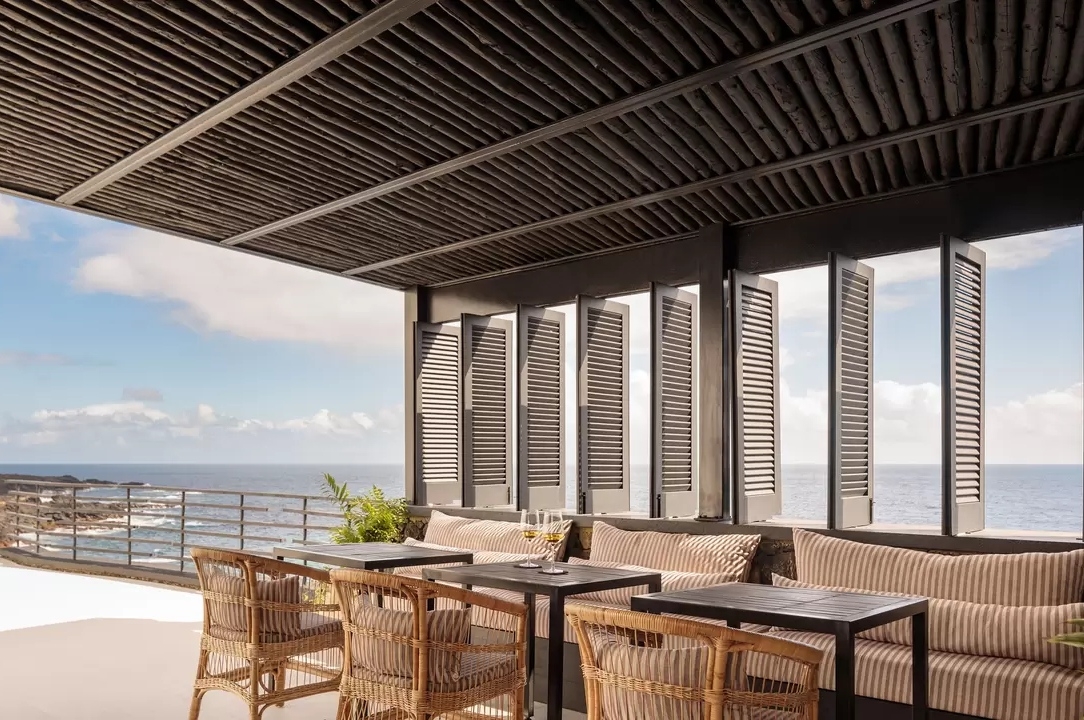 The hotel’s architecture is a tasteful synthesis of modern architectural features with regional workmanship. The calm ambiance is accentuated by its predominately white color scheme, which also lets the colorful surroundings take center stage. The expansive windows and private patios ensure that guests are always in touch with the enchanting natural beauty of the Azores. These views include the Atlantic Ocean, beautiful gardens, and the adjacent islands.