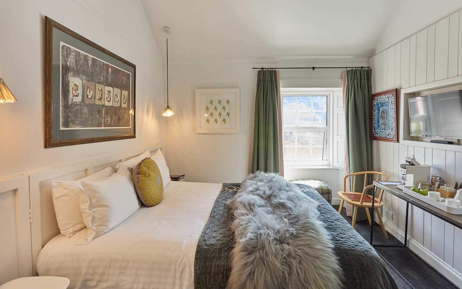 There are three homely accommodation options here. Down in the valley are two private cottages, Ghillie’s Rest and Eagle’s Crag. The former can sleep up to four people in its two bedrooms, but it is also well suited to couples. Eagle’s Crag is ideal for friends and families, with two double bedrooms and an attic room meaning up to eight people can sleep here. Each cottage has its own kitchen and catering options are entirely flexible.