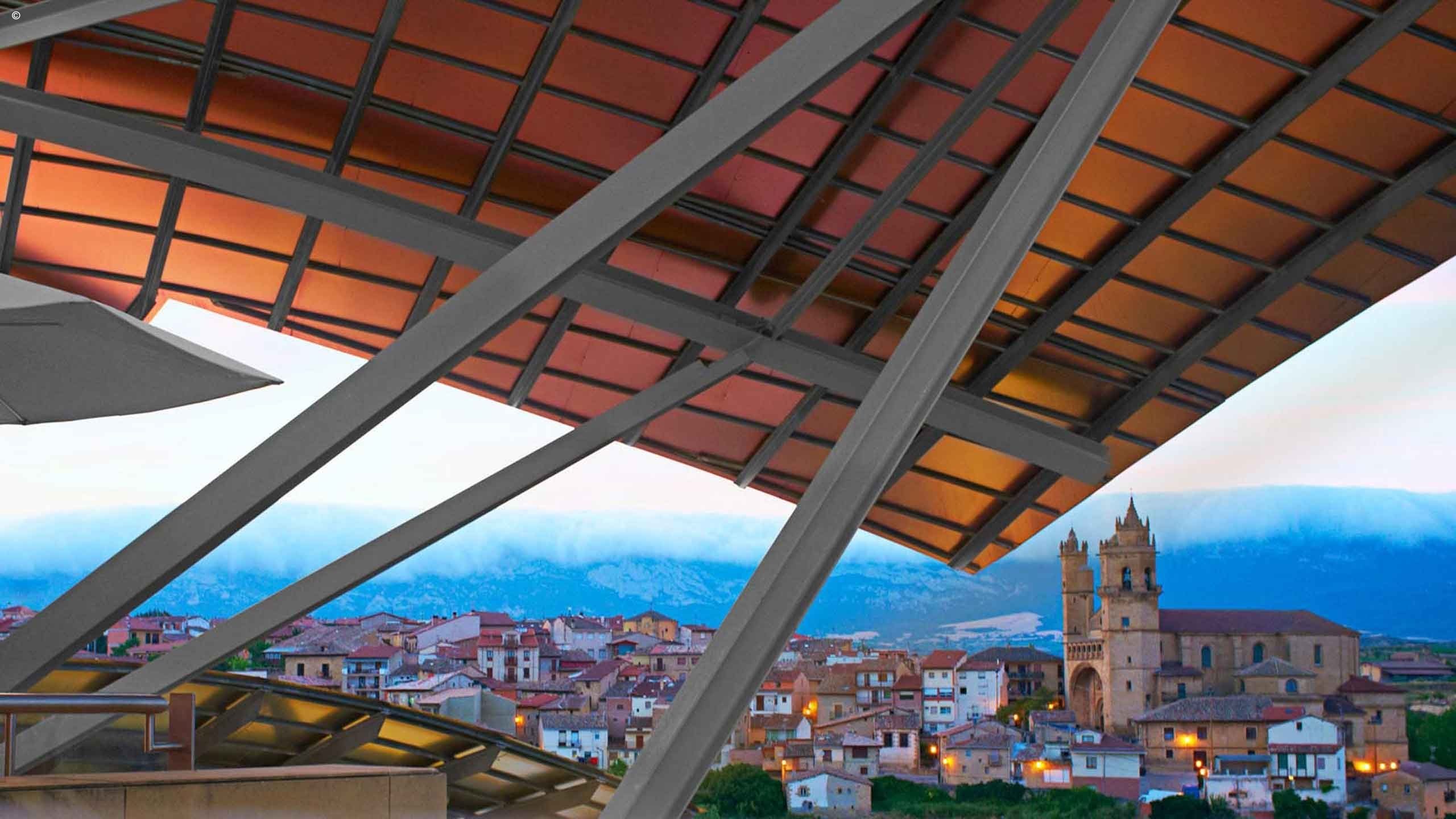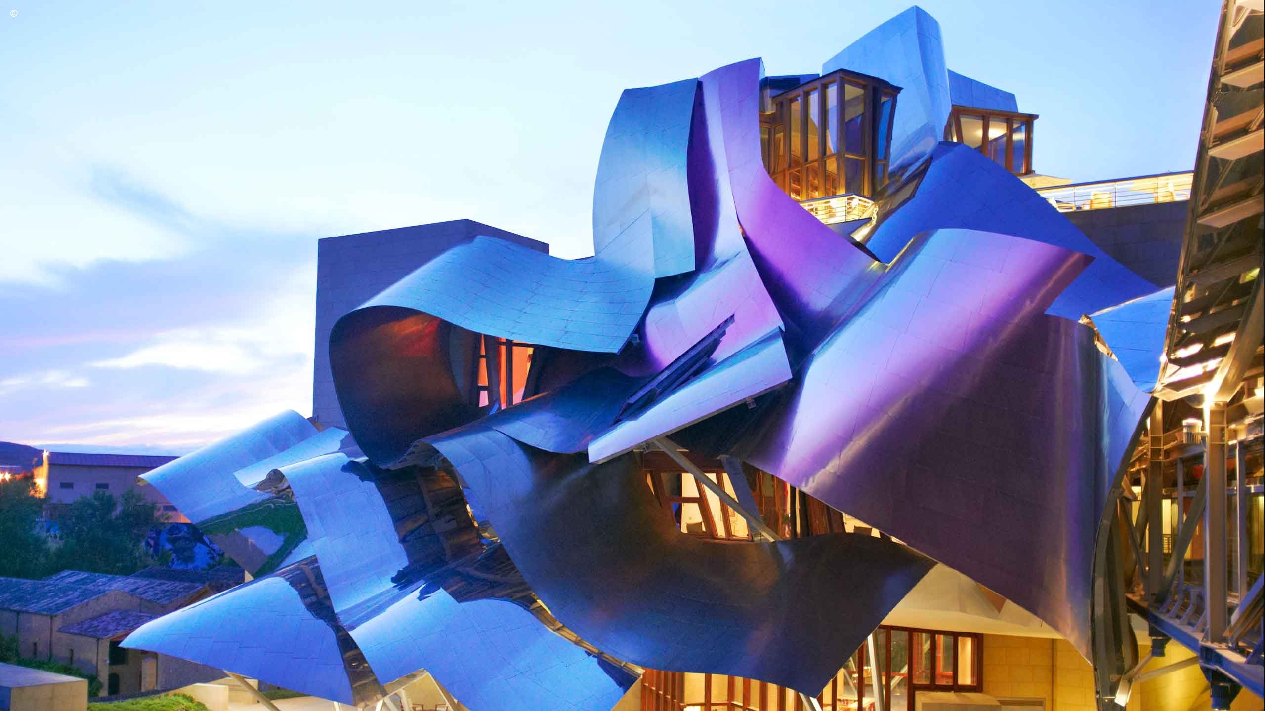 Eye-catching against the green of La Rioja’s hills, Hotel Marques De Riscal’s striking and innovative roof has been designed to reflect the precious liquid that’s produced in the celebrated adjoining winery of the same name.