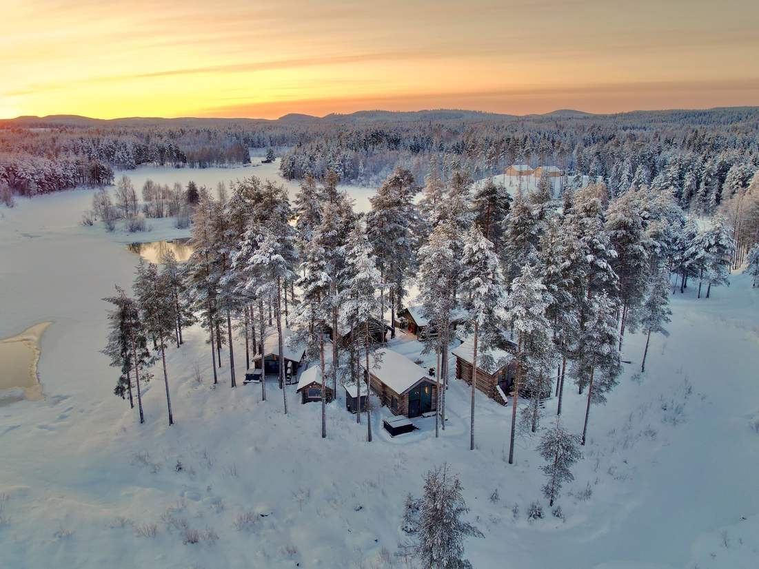 There are three log cabins, one of which is a family cabin sleeping up to four people. Each features a bathroom, fireplace and private outdoor Jacuzzi. Large panoramic windows allow you to enjoy your surroundings – the pale haze of an early morning and the sprinkling of stars on a clear night is truly magical. There is also a wood-fired sauna in a separate building.