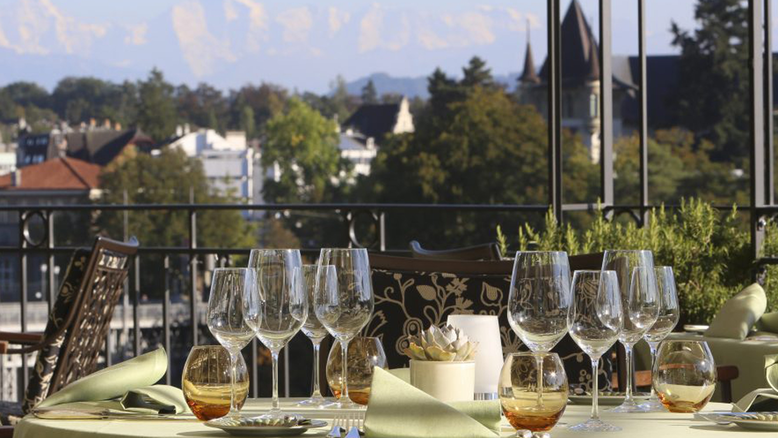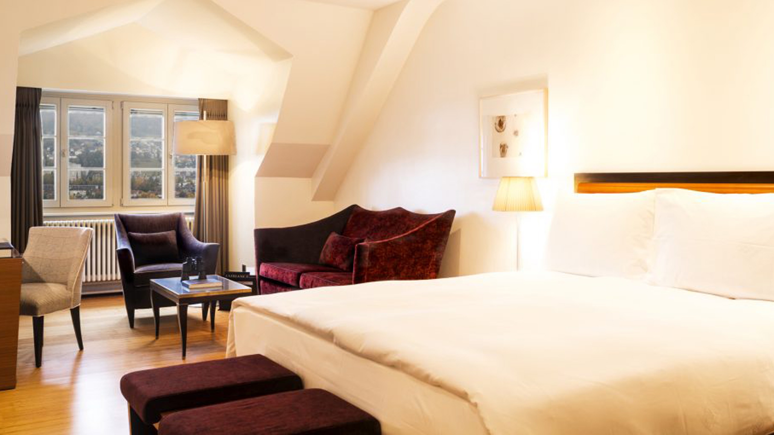 The hotel has retained the sense of traditional class instilled since its founding. In the 128 rooms and suites, antique furnishings and stucco ceilings offer a sense of grandeur, and large windows offer sweeping views of the Bernese Alps.