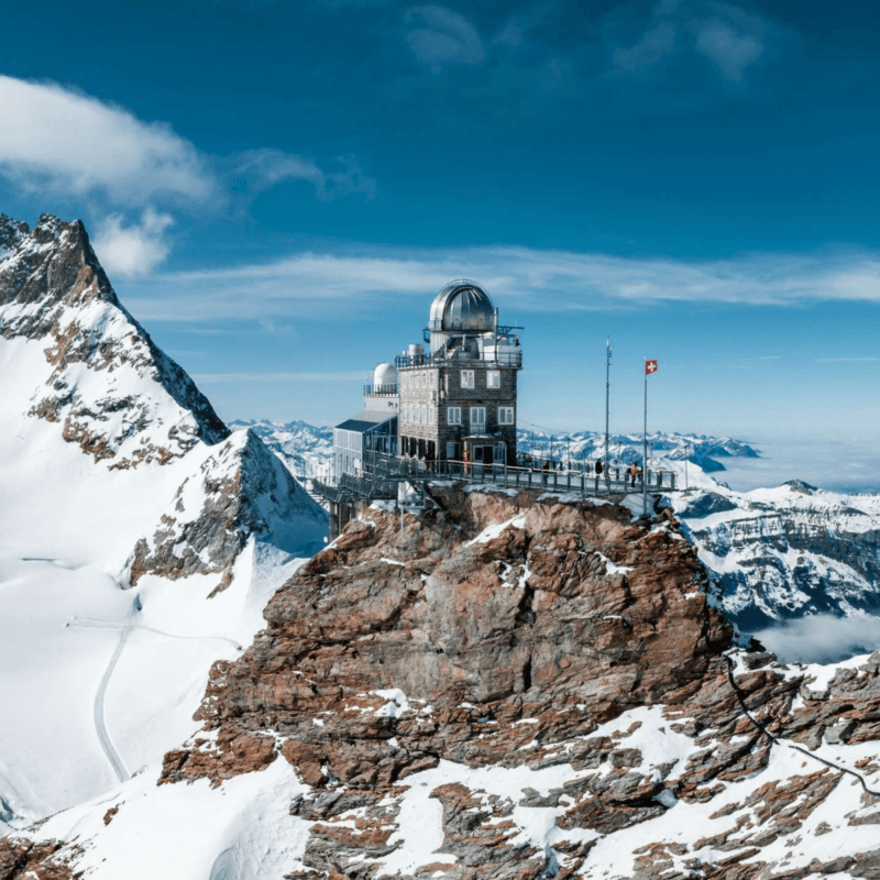 Indeed, the heavenly seat of the Sphinx Observatory is one of the world’s highest astronomical observatories. Tunnels lead out to secured hiking trails that wind across the surrounding slopes, passing safely along the crevasses in the glacier.