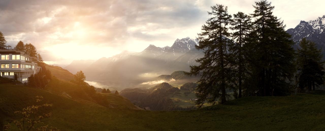 A chic mountainside hideaway, the Paradies sits in an idyllic alpine valley in Ftan that’s as beautiful covered in a blanket of snow in the winter as it is surrounded by flowering meadows in the summer months.