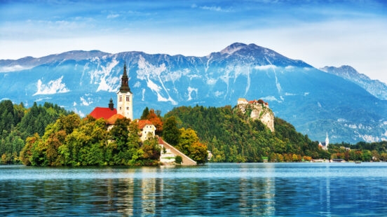 In Slovenia, Lake Bled is a fairytale location. With its baroque church island and looming clifftop castle, this lake is Slovenia’s most famous attraction. Set amidst the snow capped Julian Alps and less than an hour from capital Ljubljana, the reflective lake is small enough to walk around on foot. The iconic Church of the Assumption is one of the most photographed features of Lake Bled. Dating back to 1698, this traditional Church lies on an islet in the middle of the lake.