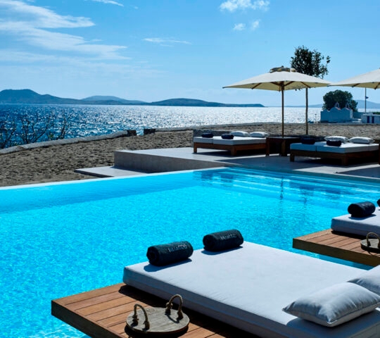We’ll make sure that you get the best loungers and the best table at the unique beach club of Scorpios, home to the most famous sunset parties on the island with impressive guest DJ sets and exquisite cuisine. The club is beautifully designed, using natural materials and colours to create a relaxing, intimate and sophisticated space befitting of its gorgeous surroundings. Expect great cocktails and a laidback atmosphere.
