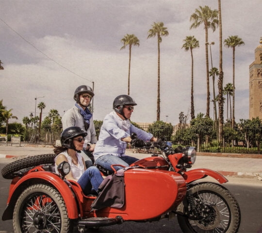 In the Medina’s beautiful maze, through the ancient French neighbourhood or in the mythical palm grove, Marrakesh is full of surprises. A vivid flea market, secret gardens behind closed doors, old art deco buildings or khettaras in the palm grove are just a few of the many hidden treasures your rider guide will introduce you to on this unusual open-air ride aboard a vintage motorbike and sidecar outfit. Your ride is tailor-made and off the beaten path, respectful of the local culture and all inclusive to offer you a memorable experience.