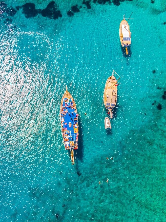 Take a boat trip out onto the clear blue waters of the Aegean Sea.