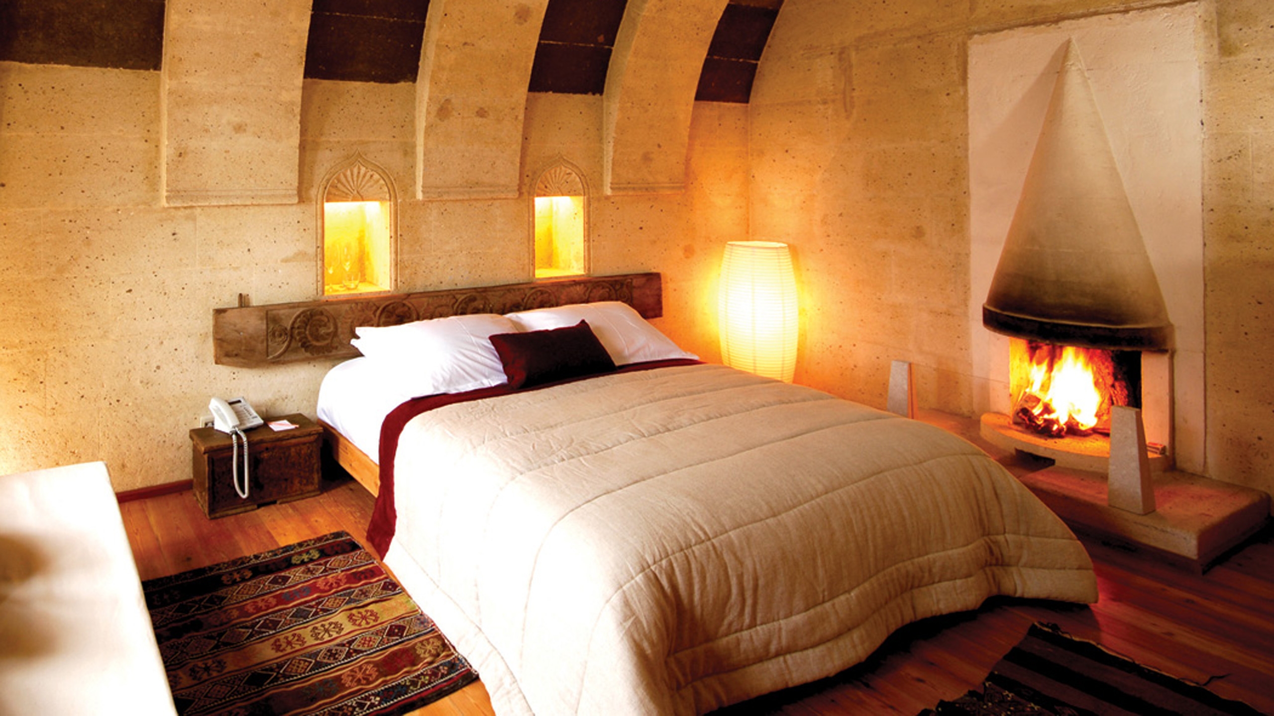 Dining is experienced on an outdoor terrace, jutting out over Pigeon Valley, and a menu of Turkish delicacies with Mediterranean flavors is on offer. A buffet breakfast is served every morning, and guests can unwind with snacks and drinks in the snug lounge by the fire. It’s also possible to sample the region’s finest wines in the vast wine cellar, dating back thousands of years and storing more than 22,000 bottles.
