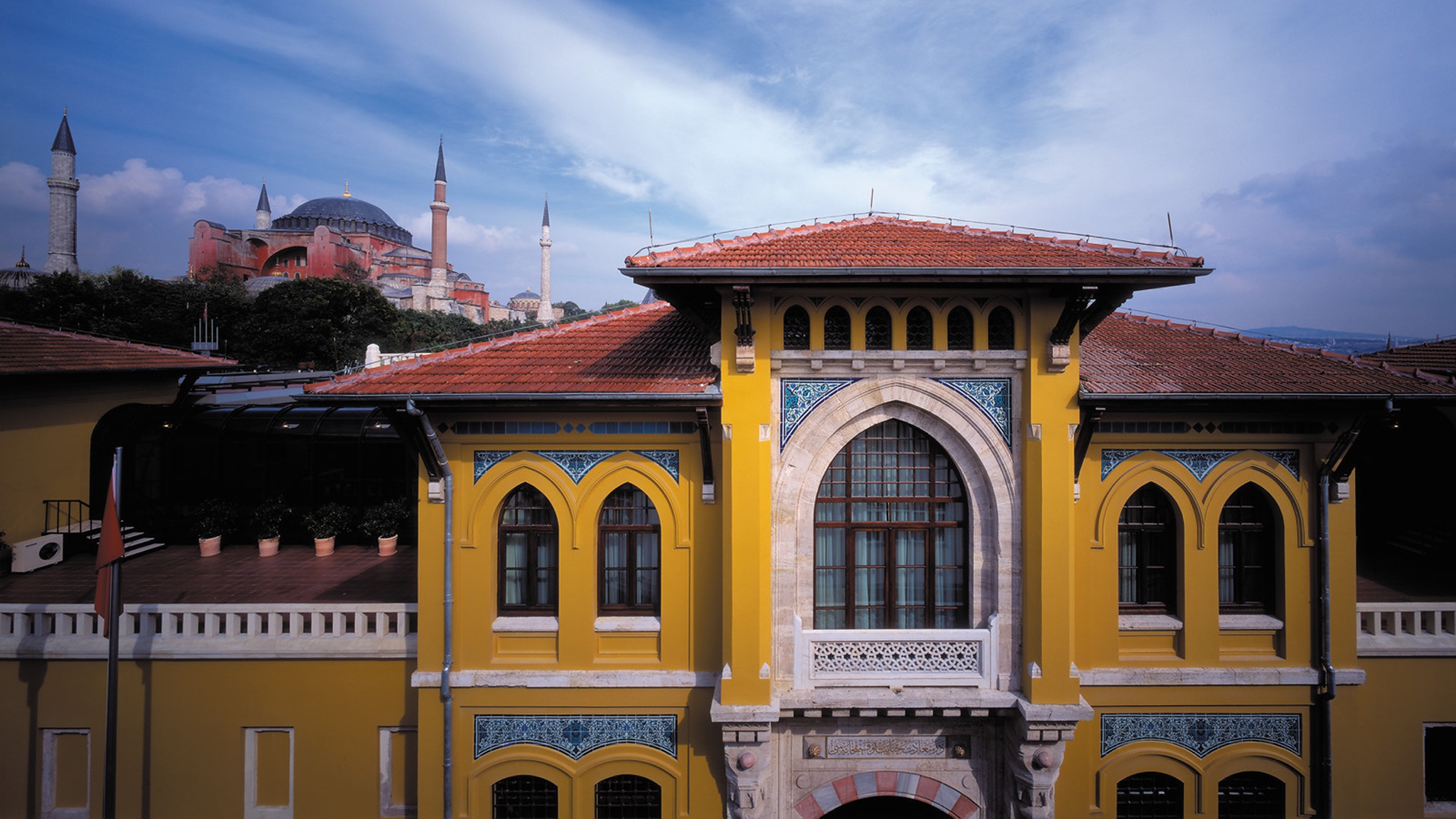 Bright and summery décor is featured in each of the hotel’s 65 rooms, with classical touches and artistic pieces found within them and throughout the rest of the hotel’s interior. Each room offers a pleasant view, ranging from the courtyard and greenery through to the Blue Mosque and the Hagia Sophia. Outside the rooms, you’ll experience beautiful surroundings featuring the likes of marble pillars, pinched arches, extravagant tiles and dramatic domes, as the hotel presents a striking example of Turkish neoclassical architecture.