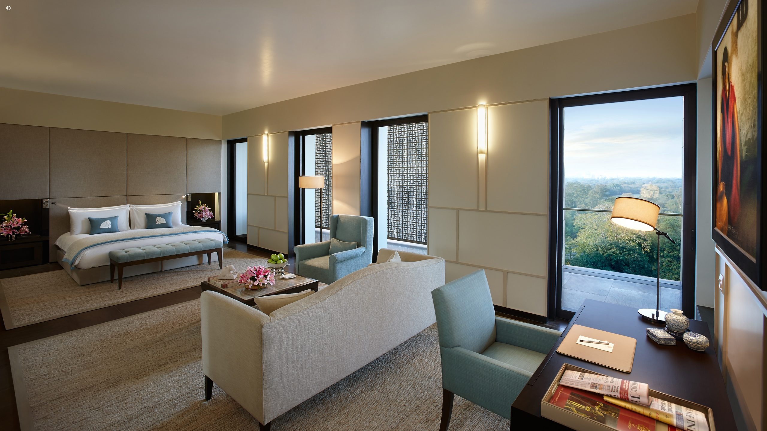 Despite being set within seven acres of grounds, the hotel has just 40 rooms giving it an intimate and exlusive feel. Rooms are elegantly styled in shades of dusky blue, grey and green and come with private balconies and plunge pools. Huge glass windows offer views out across Humayun’s Tomb and the Lodhi Gardens, from which the hotel takes its name.