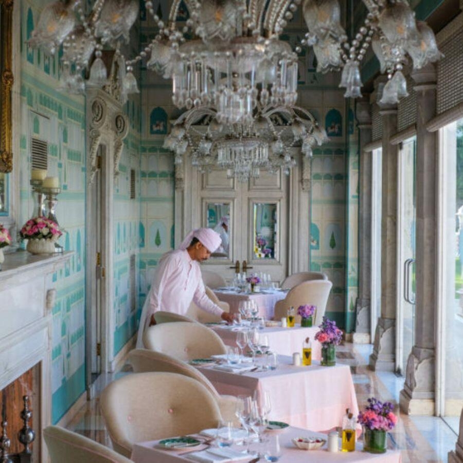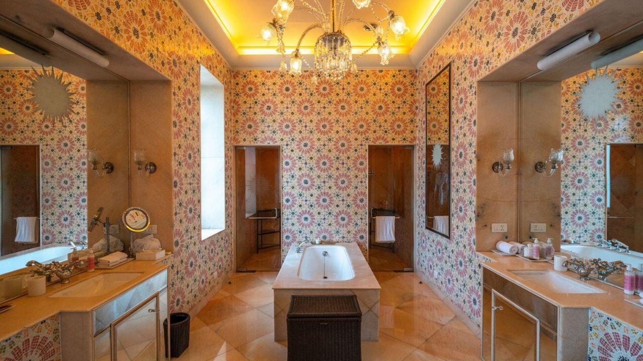 Down the marble staircase, choose to lounge around the art deco pool or treat yourself at the spa. There are three dining options; the relaxed Colonnade, vibrant 51 Shades of Pink, and formal traditional dining at The Orient Occident. The Polo Bar celebrates the talents of Jaipur’s sporting tradition and afternoon tea on the lawn is a must.