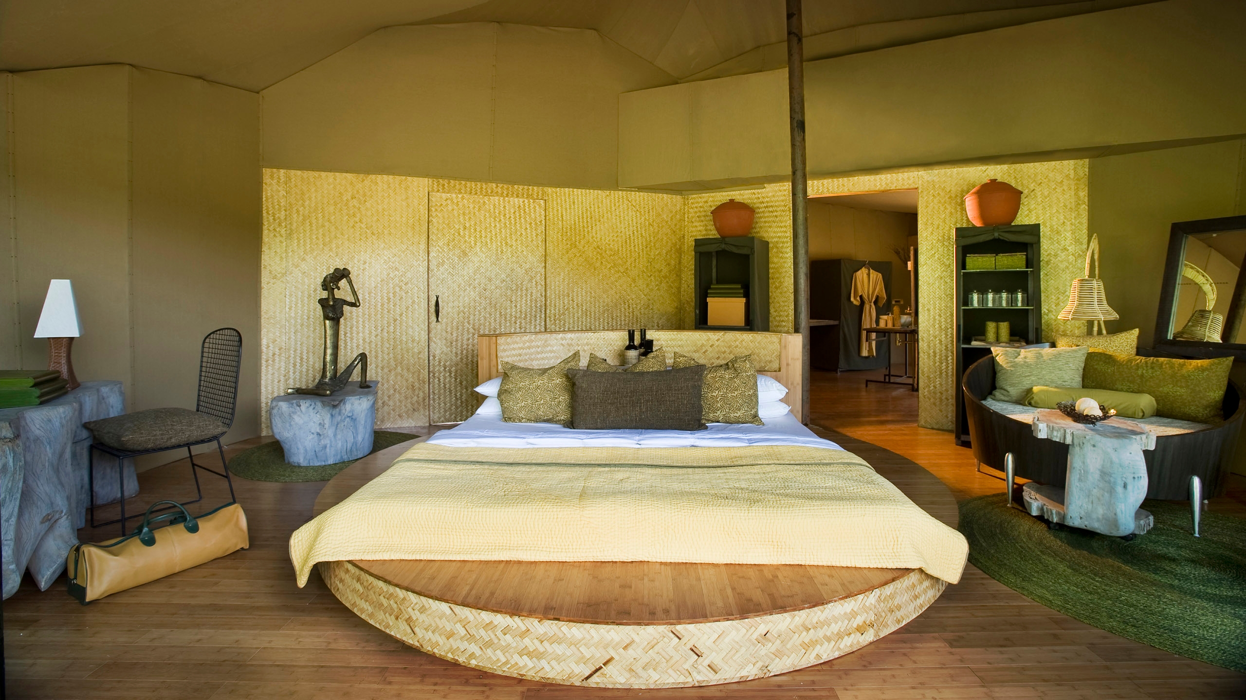 The camp itself has 18 tents, split into two groups of nine to ensure an intimate safari experience. Each feature bamboo floors and canvas walls with glass doors leading out onto a floating veranda and beautiful views of the river.