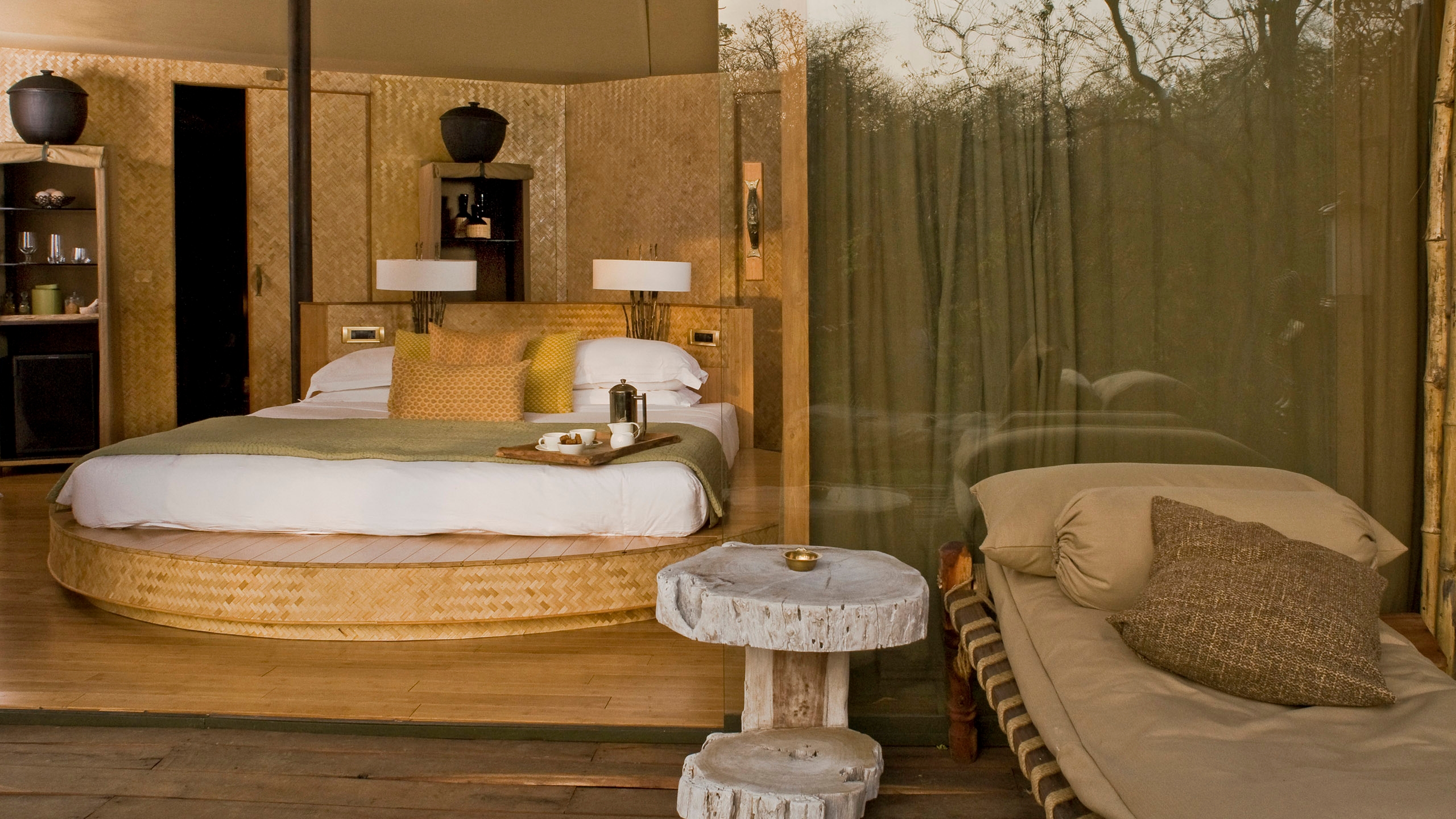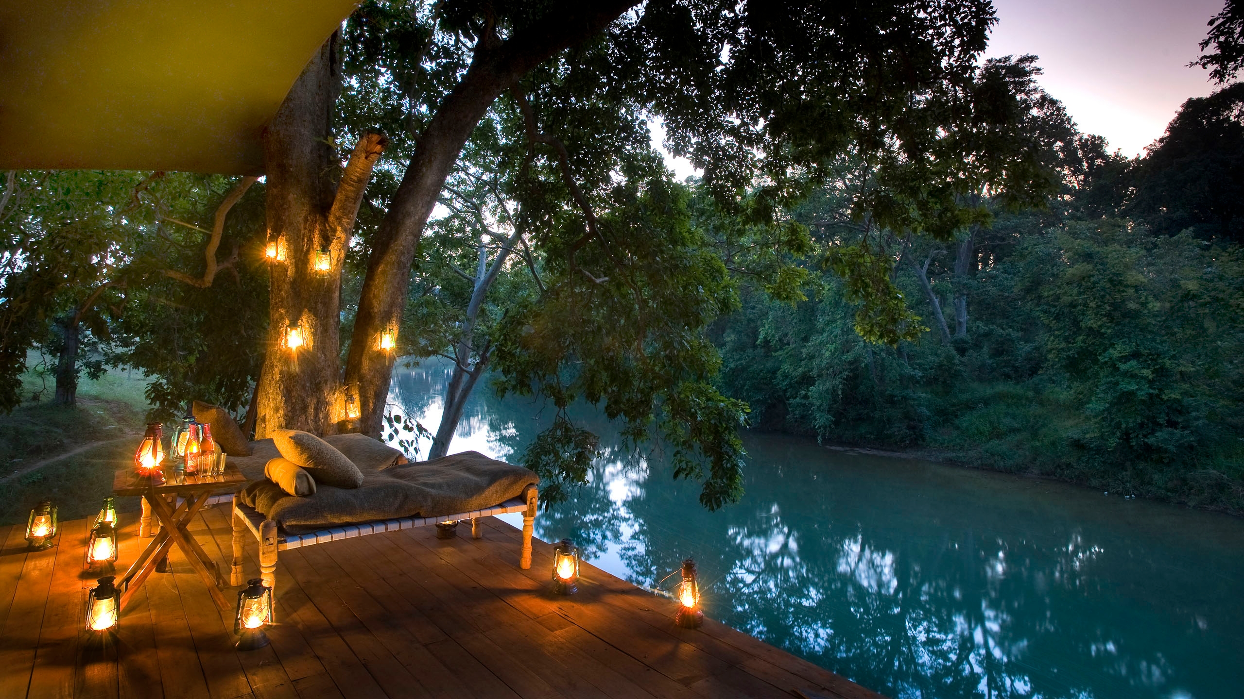 Delicious regional fare is served on the spacious dining decks or in the heart of the sal forest lit by lanterns. There’s also a swimming pool to watch wildlife from and library in which to find out more between twice daily game drives. You can also enjoy a personalized cookery lesson from the chef and enjoy a relaxing spa treatment in the wilderness.