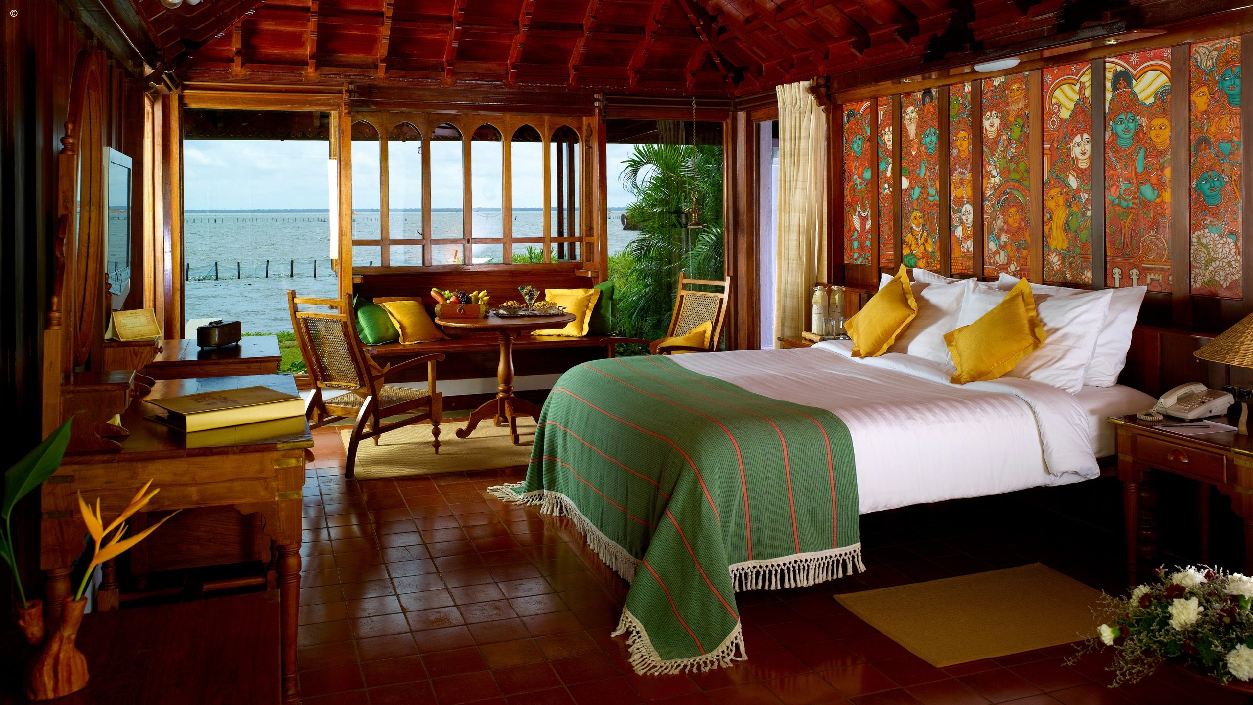The eight-sided Ettukettu restaurant was originally commissioned by King Marthanda Varma as a gift to his favourite martial arts tutor, and has been dismantled and restored piece by piece in its new location at the hotel. Being in the heart of Kerala’s backwaters means fresh fish is in abundance at the seafood bar, which is one of the best places to watch the sunset. There is also a traditional tea shop set among the verdant gardens.