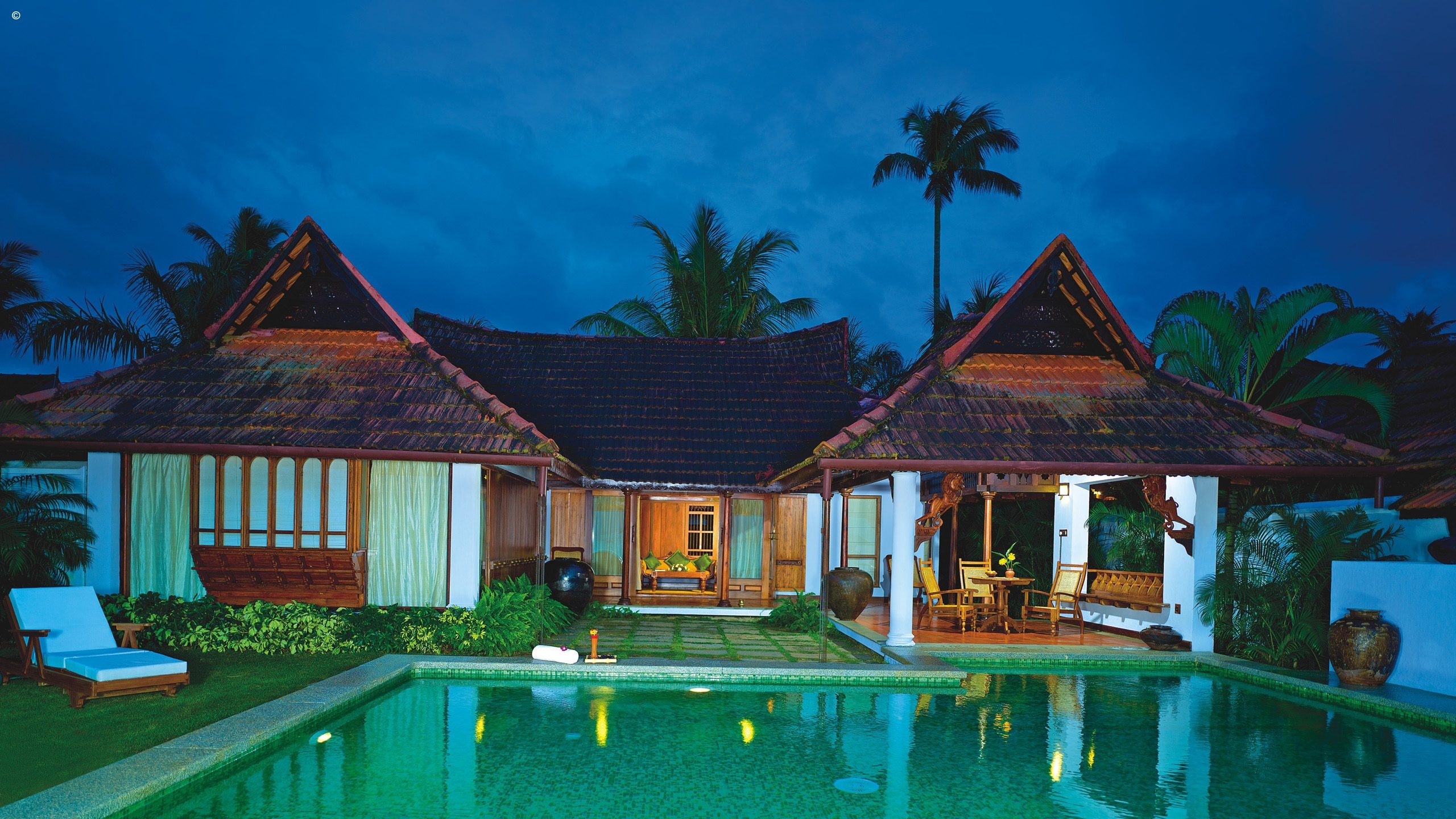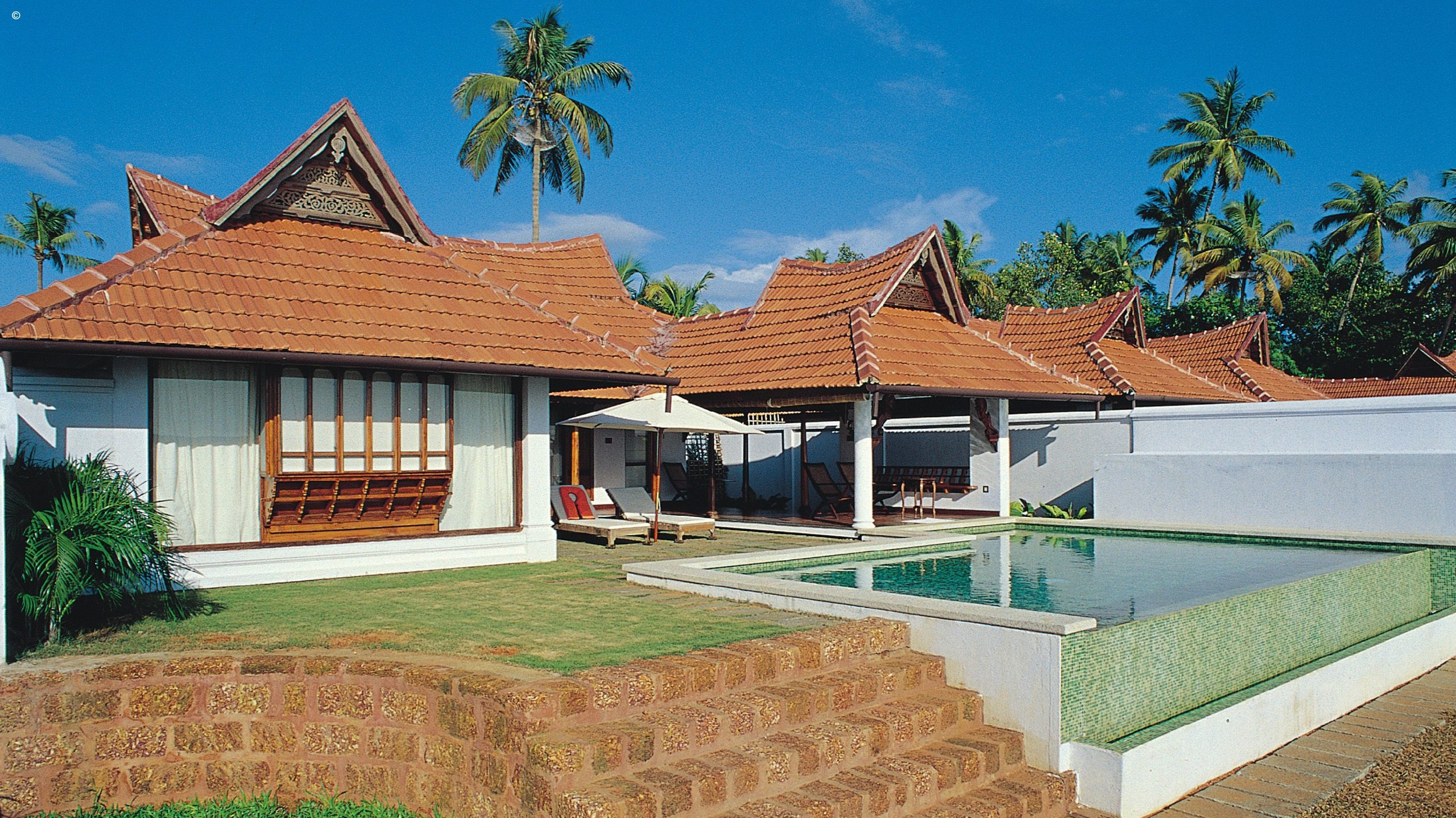 Each of the villas have been reconstructed the traditional homesteads of Keralan villages, many of them lovingly reassembled from the original
