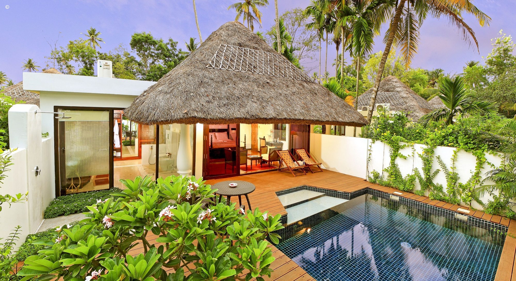 There are 30 villas set in the sprawling gardens, each a luxurious blend of modern and traditional Keralan design with private pools, lavish bathrooms and walk-in dressing rooms.