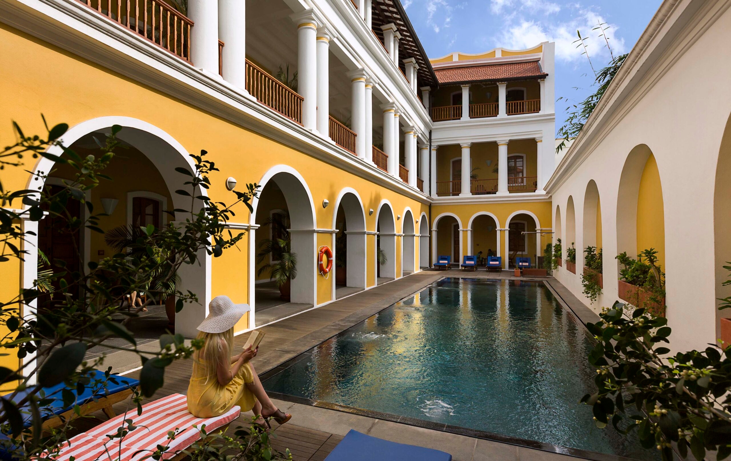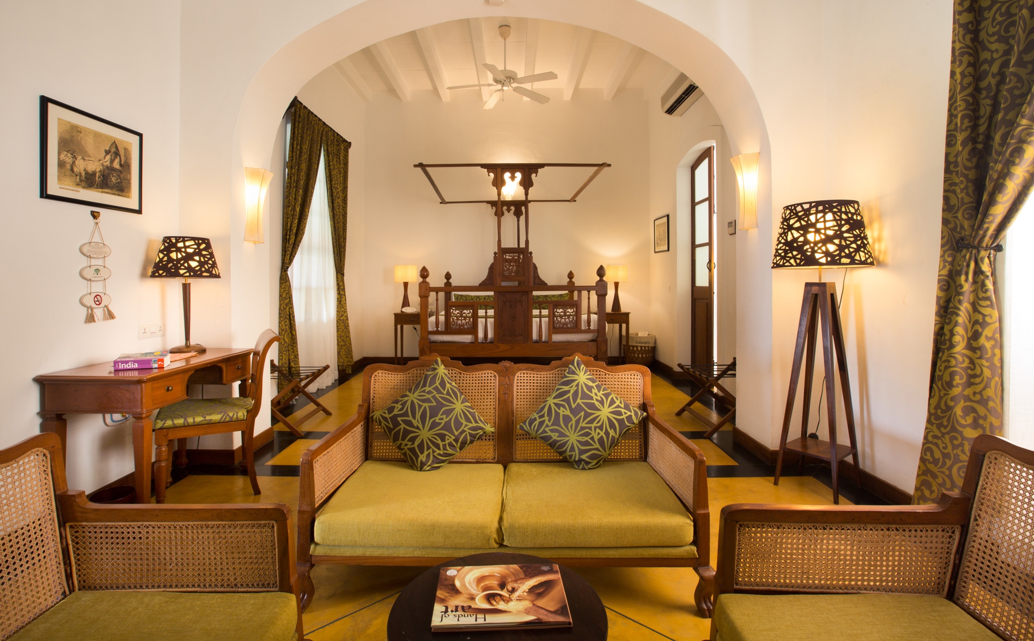 Pondicherry’s unique street signs, presented in multiple languages, reflect its cosmopolitan nature and serve as a nod to global travelers. The city’s urban landscape is a tribute to its rich diversity, where historic buildings coexist with charming sidewalk cafes, trendy designer boutiques neighbor traditional sari shops, and upscale commercial spots blend seamlessly with roadside bangle sellers and temple pilgrims in a vibrant, bazaar-like setting. These rich contrasts are woven into the very fabric of Palais de Mahe, mirroring the duality of this enchanting seaside city in southern India. The hotel’s style remains true to its historical roots, while the experience it offers is a captivating fusion of the old and new, making you feel like a traveler through time.