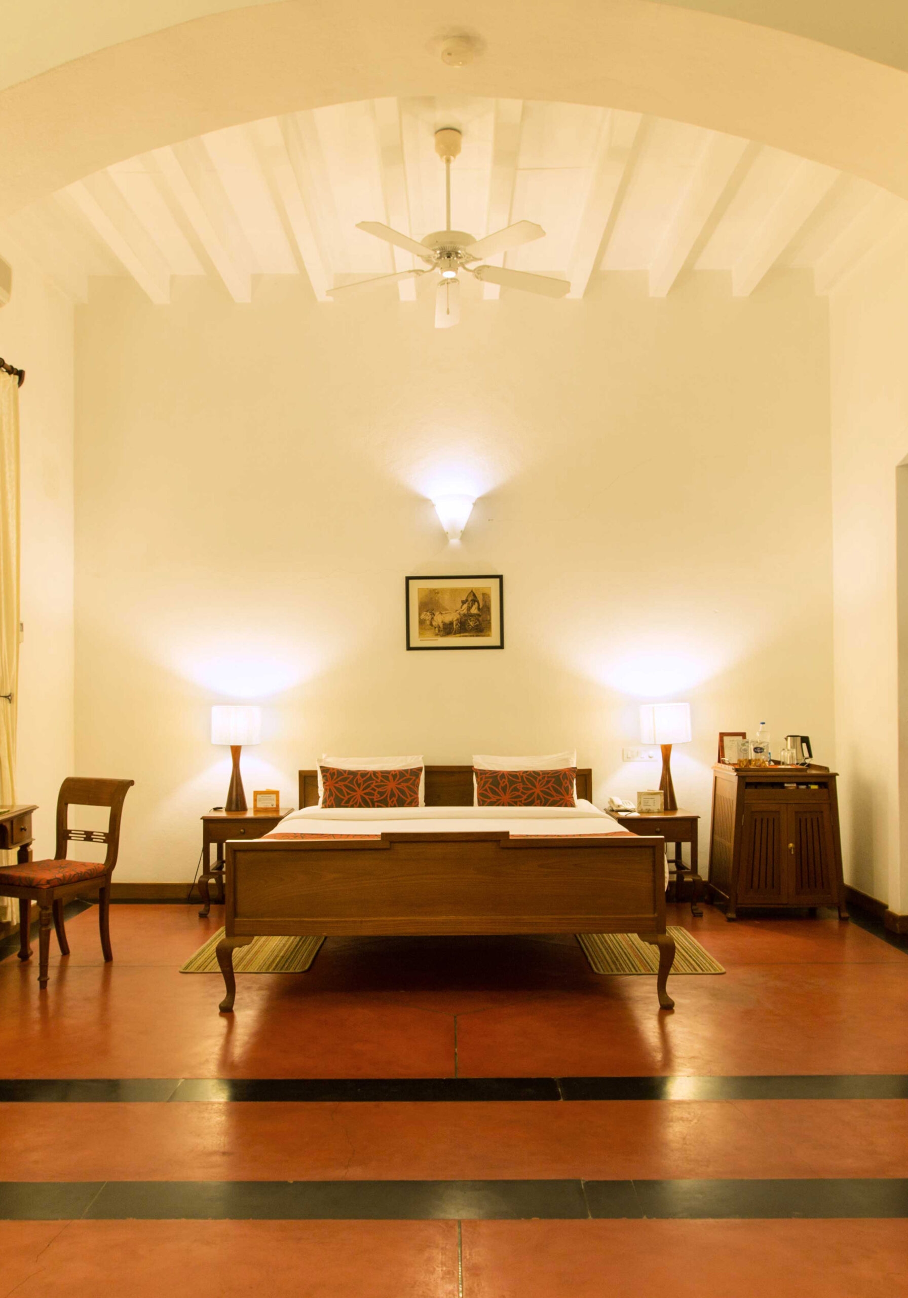 Palais de Mahe is situated just 50 meters from the seaside promenade, where the cool breezes and gentle murmurs of the Bay of Bengal create a serene atmosphere. This distinctive hotel, featuring a grand courtyard, expansive verandahs, elegant pillars and period furniture, blends the vibrant essence of South India with the passionate spirit of France, offering a truly unforgettable experience. Nestled in the heart of the French Quarter, the hotel is surrounded by charming streets and historic elegance. Every aspect of Palais de Mahe, from its rooms to its café and décor, encapsulates the essence of Pondicherry. The interiors exude a distinct French character, with stylish modern touches.