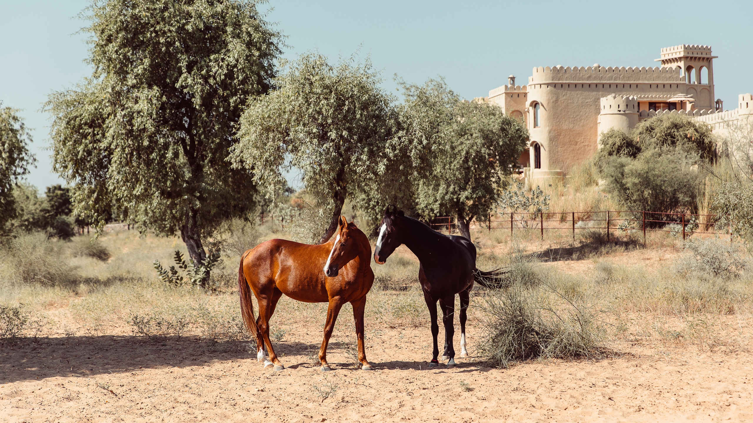 Experience the wild setting on a range of excursions such as horse riding on fine specimens of the hardy Marwari breed, tours to nearby villages to learn about the unique culture of rural Rajasthan, picnics in the deserts and bird watching. A really special experience is a ‘shikar’ dinner in the desert, a traditional hunting feast by the fire out in the dunes under the stars before a camel ride back to the fort.
