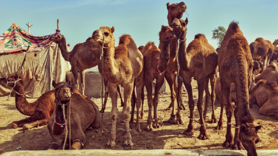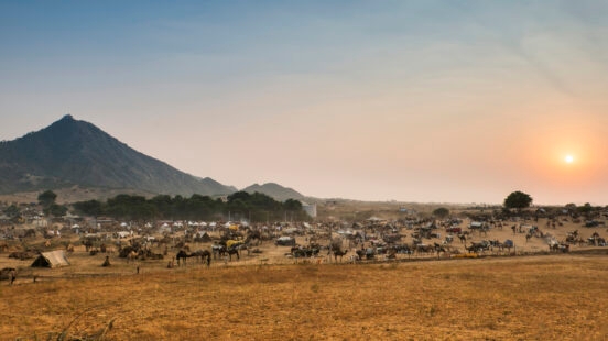 Pushkar Camel Fair takes place in the months of October and November each year. Pushkar is well connected to the major cities in Rajasthan by both road and rail, so it’s pretty easy to reach. October is the start of India’s dry season, and by November the skies become clear and sunny. In the desert, temperatures can still feel slightly chilly at night, so it’s a good idea to pack layers.