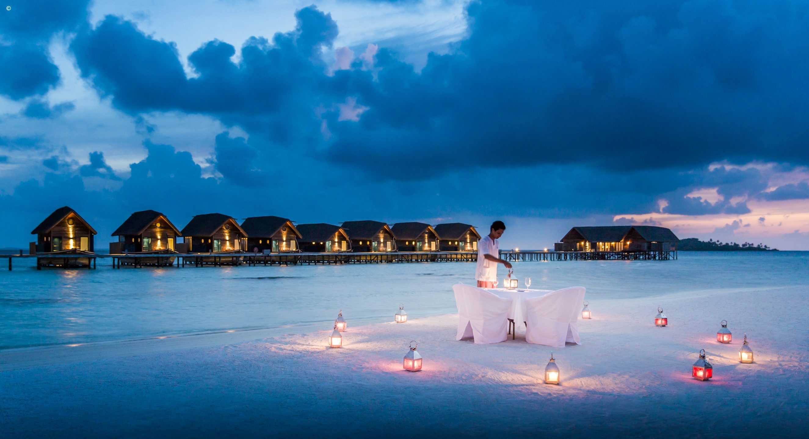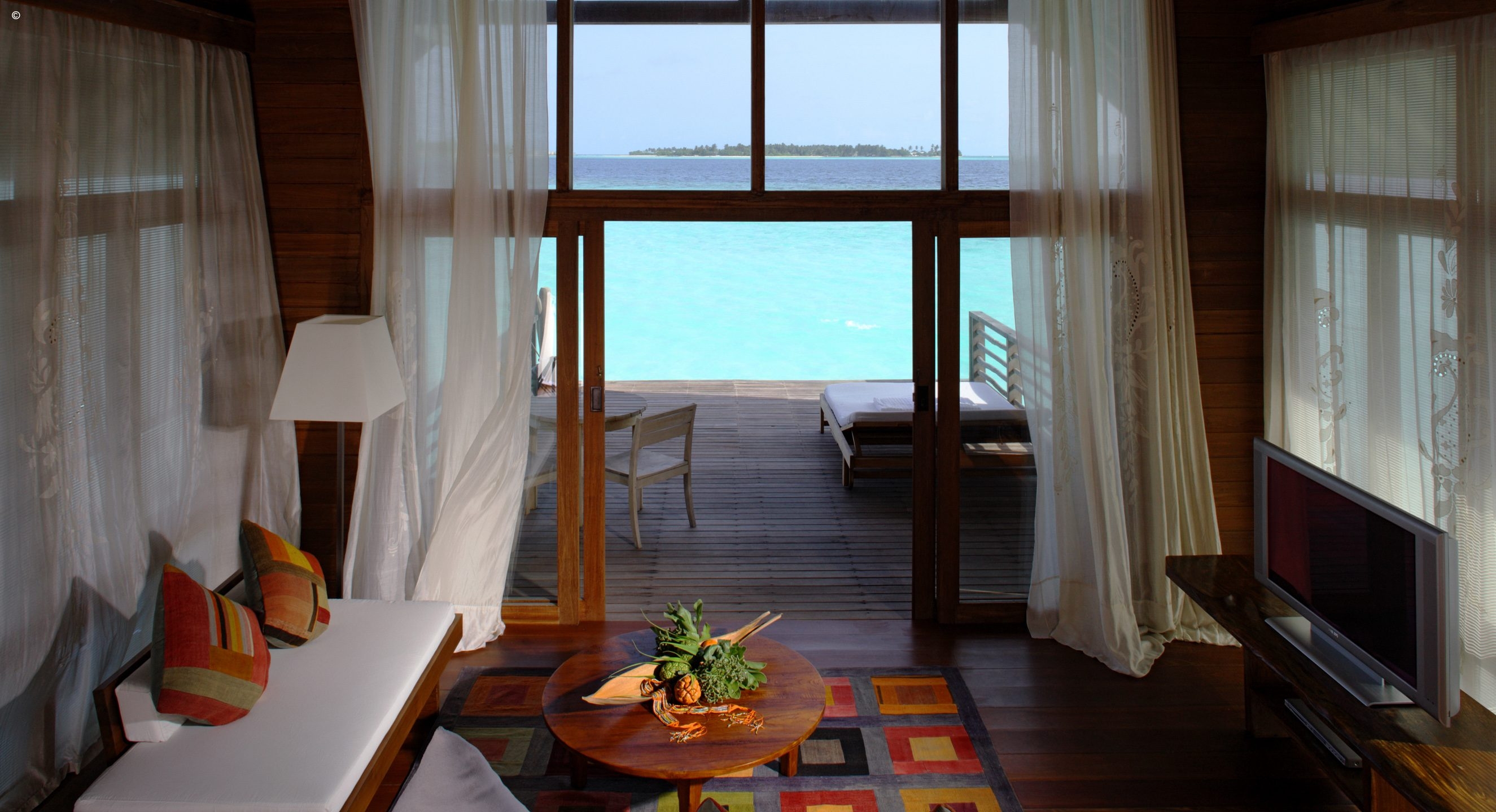 The suites on Makunufushi island resemble a collection of Kerelan boathouses, each with a private sundeck, vintage-style ceiling fans, whitewashed walls, and lavish en-suite with roll-top bathtub. The ultra-private one-bedroom villas also offer dining bales and outdoor showers.