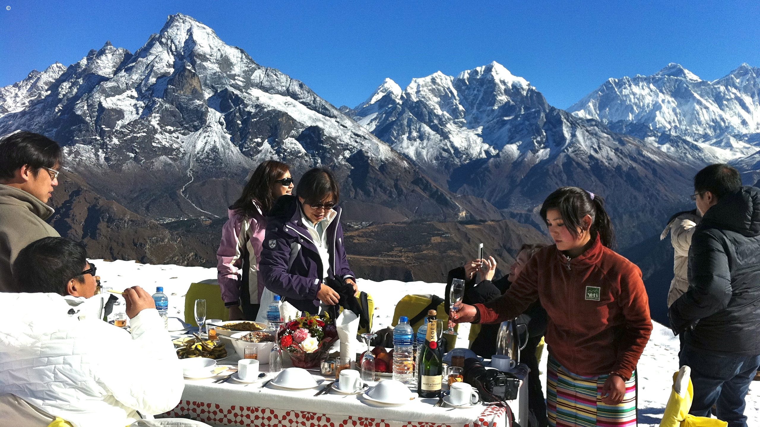 Besides the majesty of international titan, Everest, you are also surrounded by giants such as Lhotse, Makalu, Cho-Oyo and Gyajung Khang – not forgetting views of Khumbu Valley and Kongde Lake.