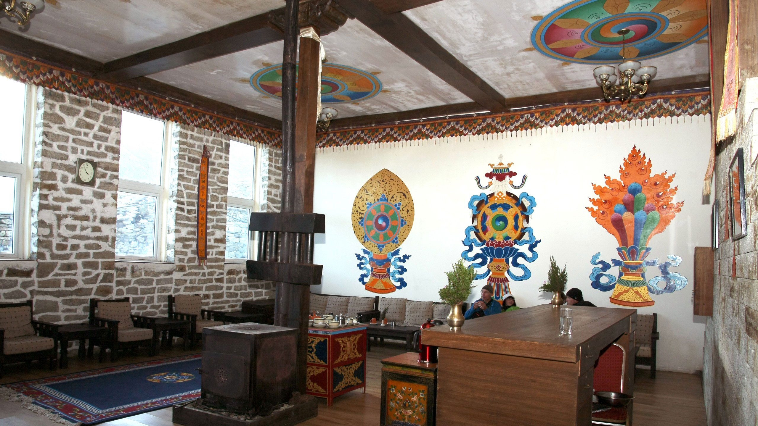 Weary trekkers are well looked after here with 12 comfortable rooms which are finished with a combination of traditional Khumbu and modern style, featuring natural wood. The views are spectacular.