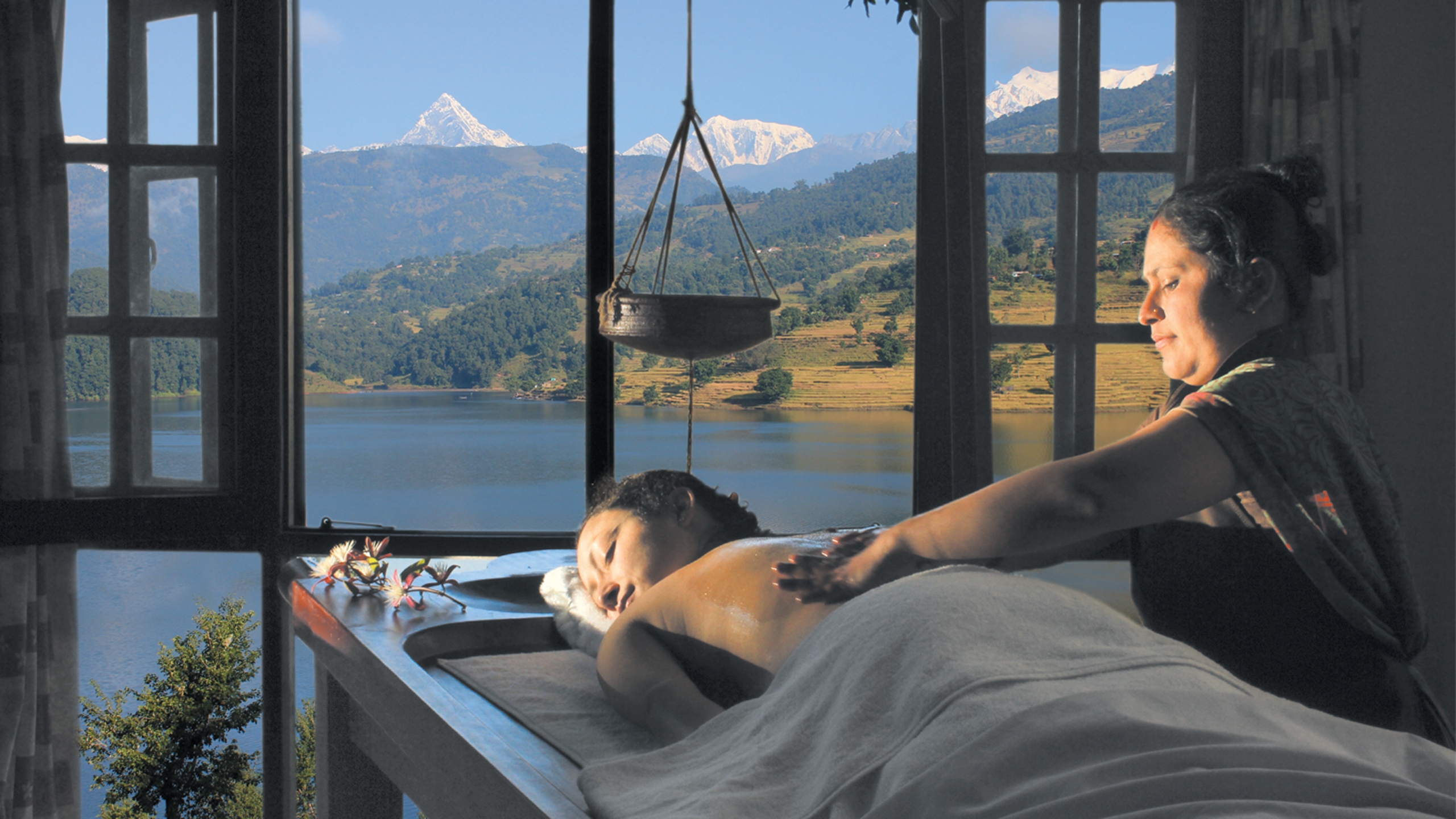 Nestled among lush vegetation on a tranquil lake a short distance from Pokhara town, this all-natural sanctuary faces the snow-clad Annapurna massif that towers above flourishing paddy fields and the gentle Begnas lake.